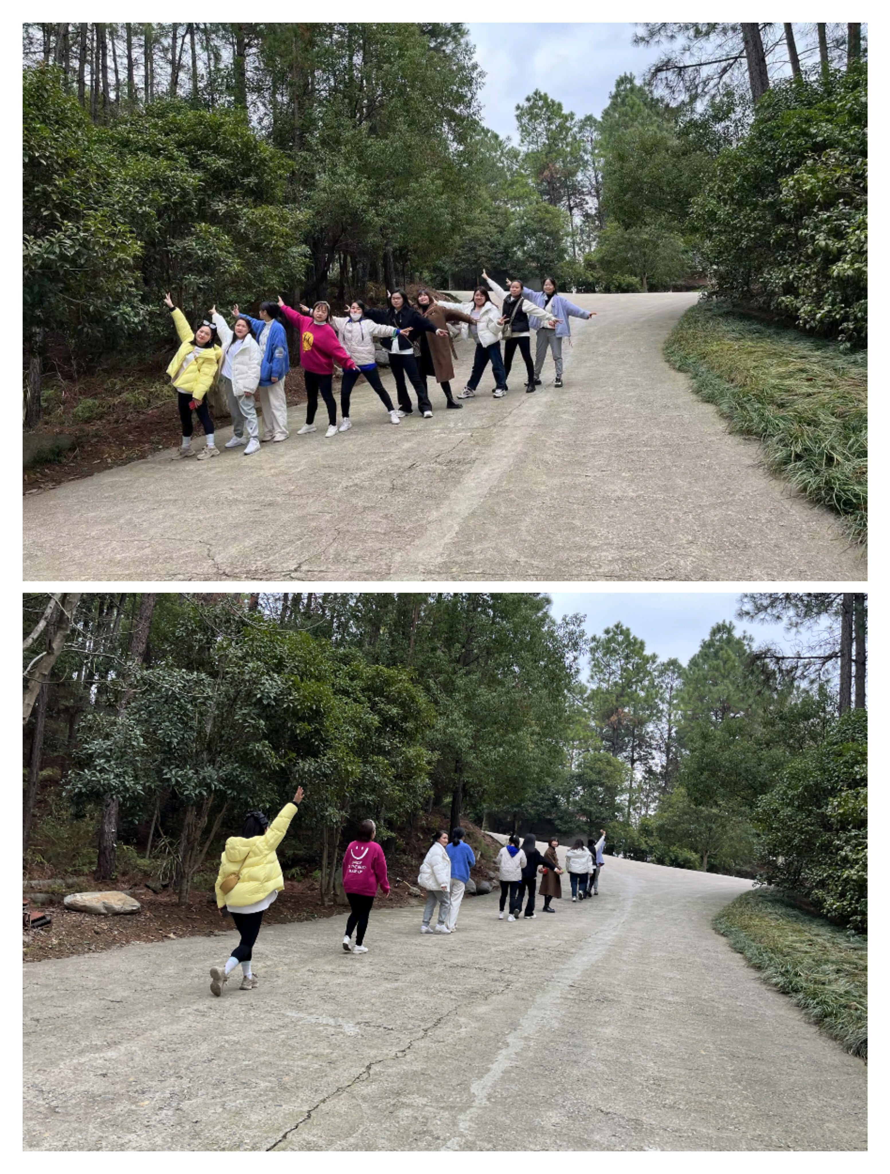走在山林小道上,领略着大自然美景,姐妹们结伴而行,或开心聊天、或驻足留念或你追我赶、或比赛竟走、或相互鼓励……一片欢声笑语中,大家忘记了工作上的疲惫,在踏足到山顶的那一刻收获了健康、愉悦了身心。