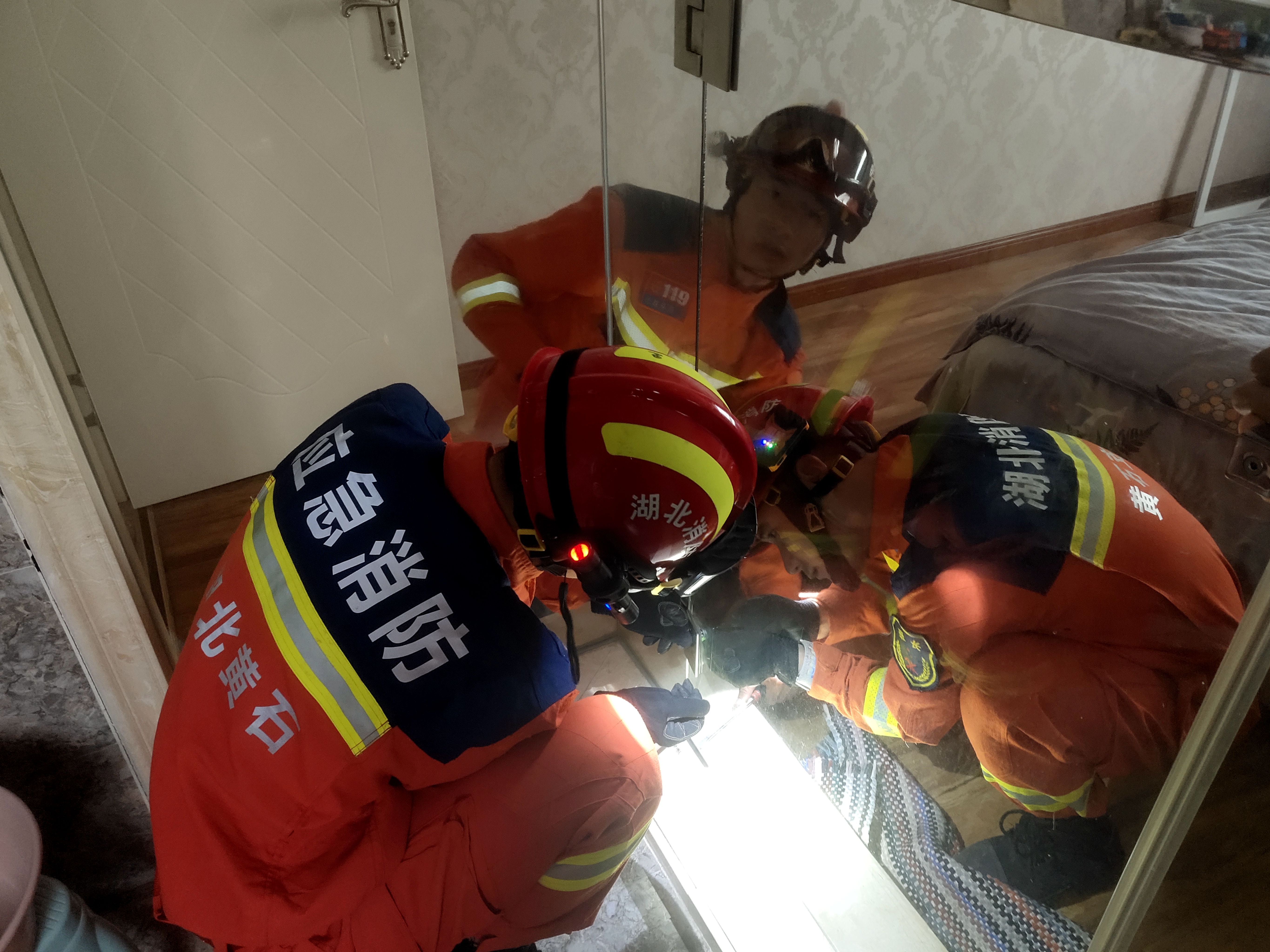 “当时小孩子起床刷牙准备上学,一不小心手就伸进去门缝里退不出来了,她在浴室里,我也进不去,我怕伤到她也不敢让她把手指抽出来……”女童母亲焦急的解释道。了解情况后,救援人员迅速展开施救行动,为防止二次伤害,在处置时,救援人员不停安抚女童,一边利用螺丝起把玻璃门合页取下,小心翼翼地利用小撬棍扩大门缝隙。经过2分钟左右的紧张救援,成功解救出小女孩被卡的手,立即让父母带小女孩送往医院检查。