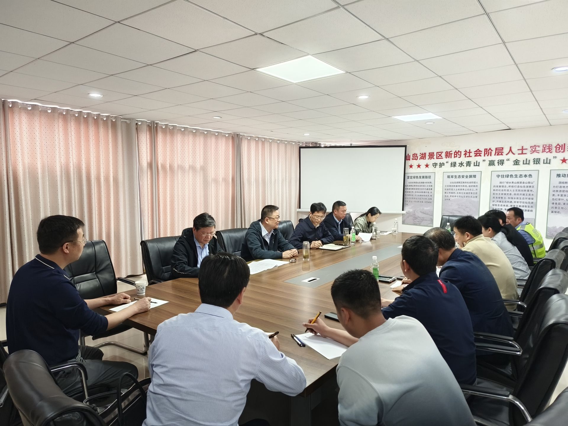 吴之凌一行来到王英镇仙岛湖生态旅游风景区游客接待中心,在值班室通过实时视频系统察看了景区实时状况,并详细了解景区流量监控、数据监测统计、旅游安全管理等情况。