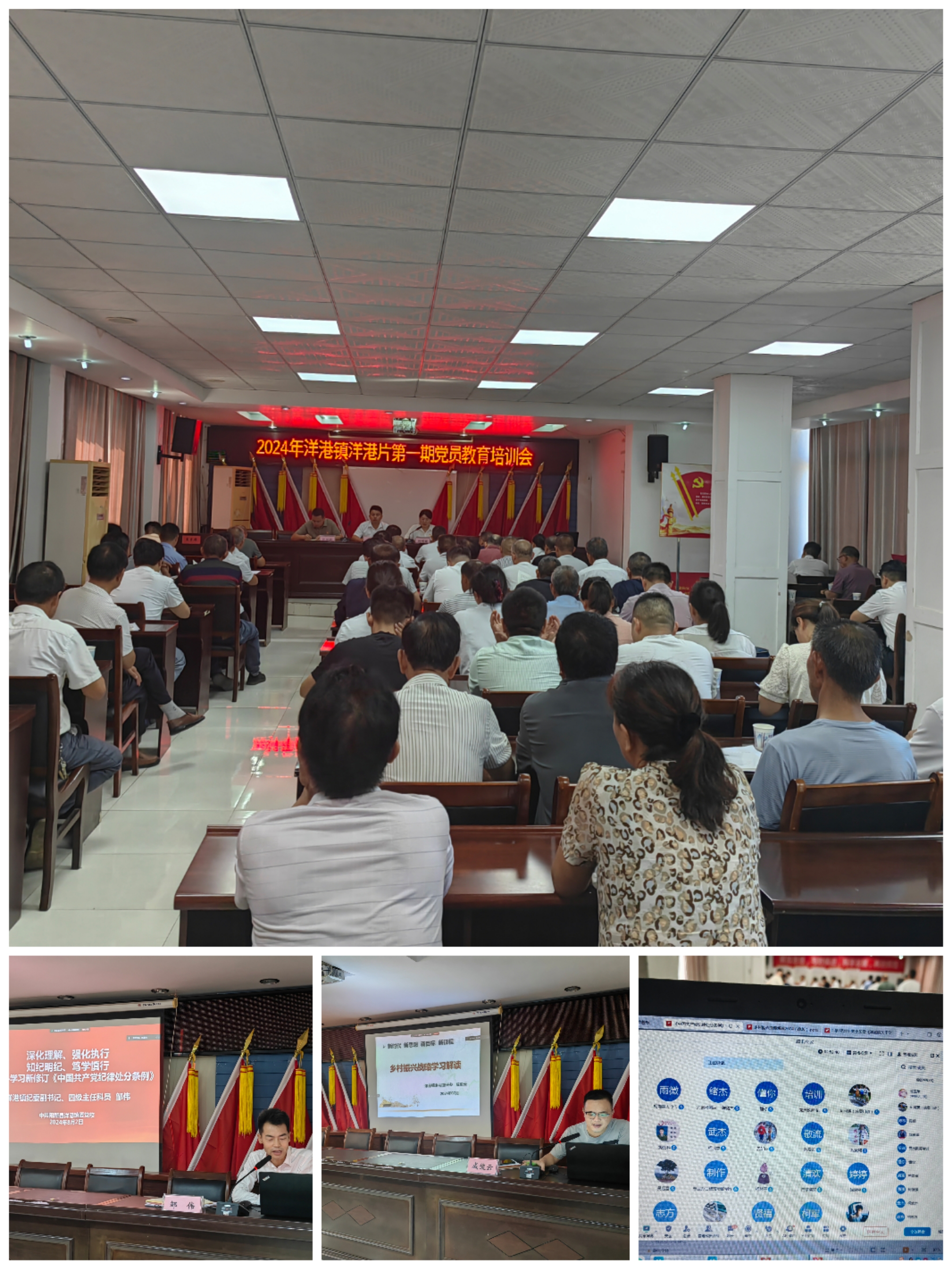 经过半个月的精心筹备,8月2日上午,洋港镇依托镇委党校和腾讯会议线上平台,组织召开2024年第一期党员教育培训会。洋港片四个村的82名在村党员、44名流动党员参加培训。