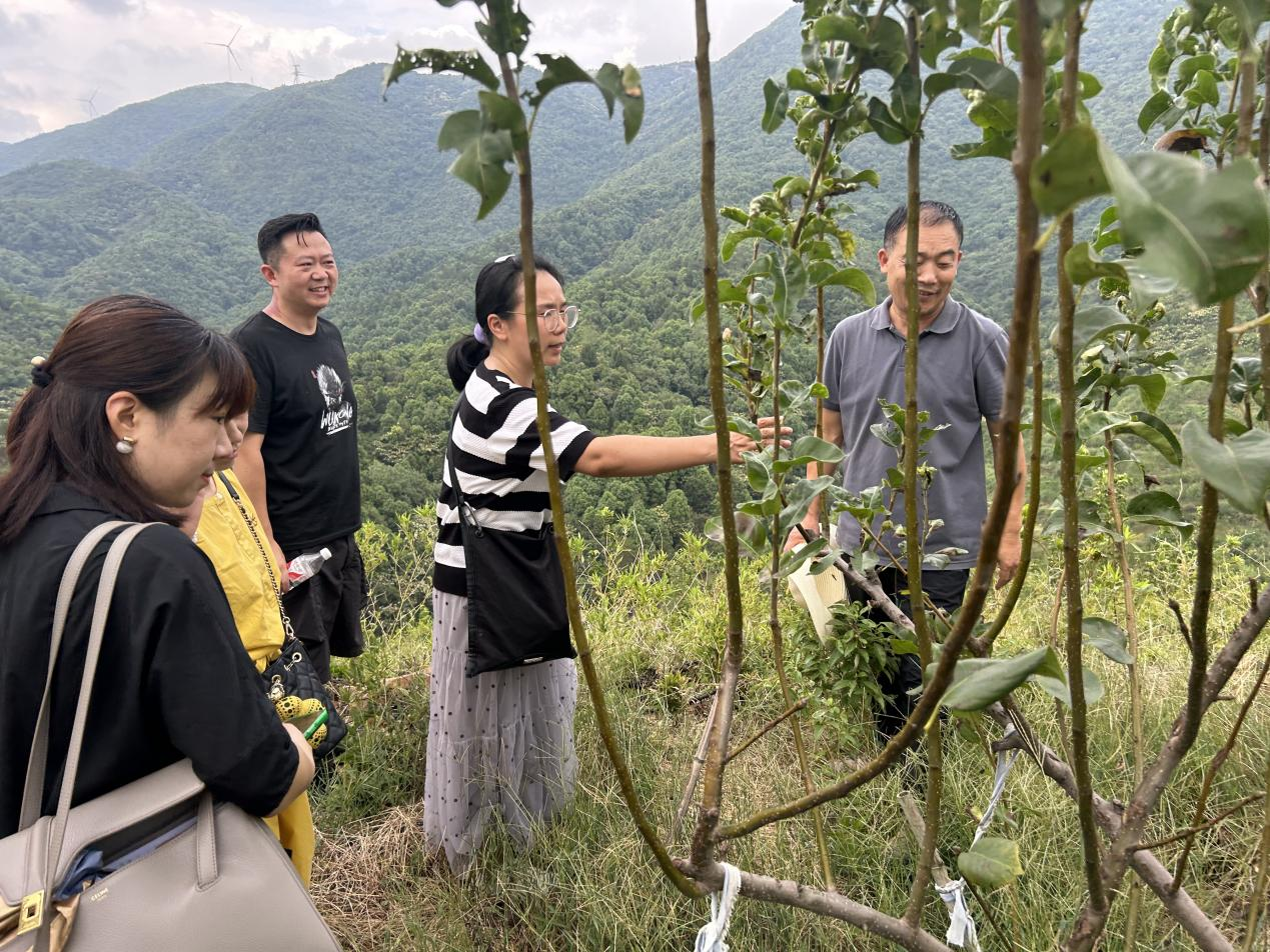 产业发展是巩固脱贫攻坚成果、增加农民收入的经济保障。在李才村秋月梨基地,调研团队在中国银行阳新支行驻村工作队的现场解说下,就秋月梨种植的土壤成分、水肥供给、培育过程等进行实地考察。