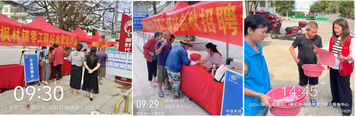 27日上午,一场别开生面、贴近民生的招聘会在阳新枫林镇举行。招聘会通过现场招聘、发放便民小物品及入户讲解等形式,向枫林镇中心及周边村组居民提供就业岗位2000余个,发放就业惠民政策宣传资料1000余份,收集并登记求职零工175人,受到当地居民的热烈欢迎。