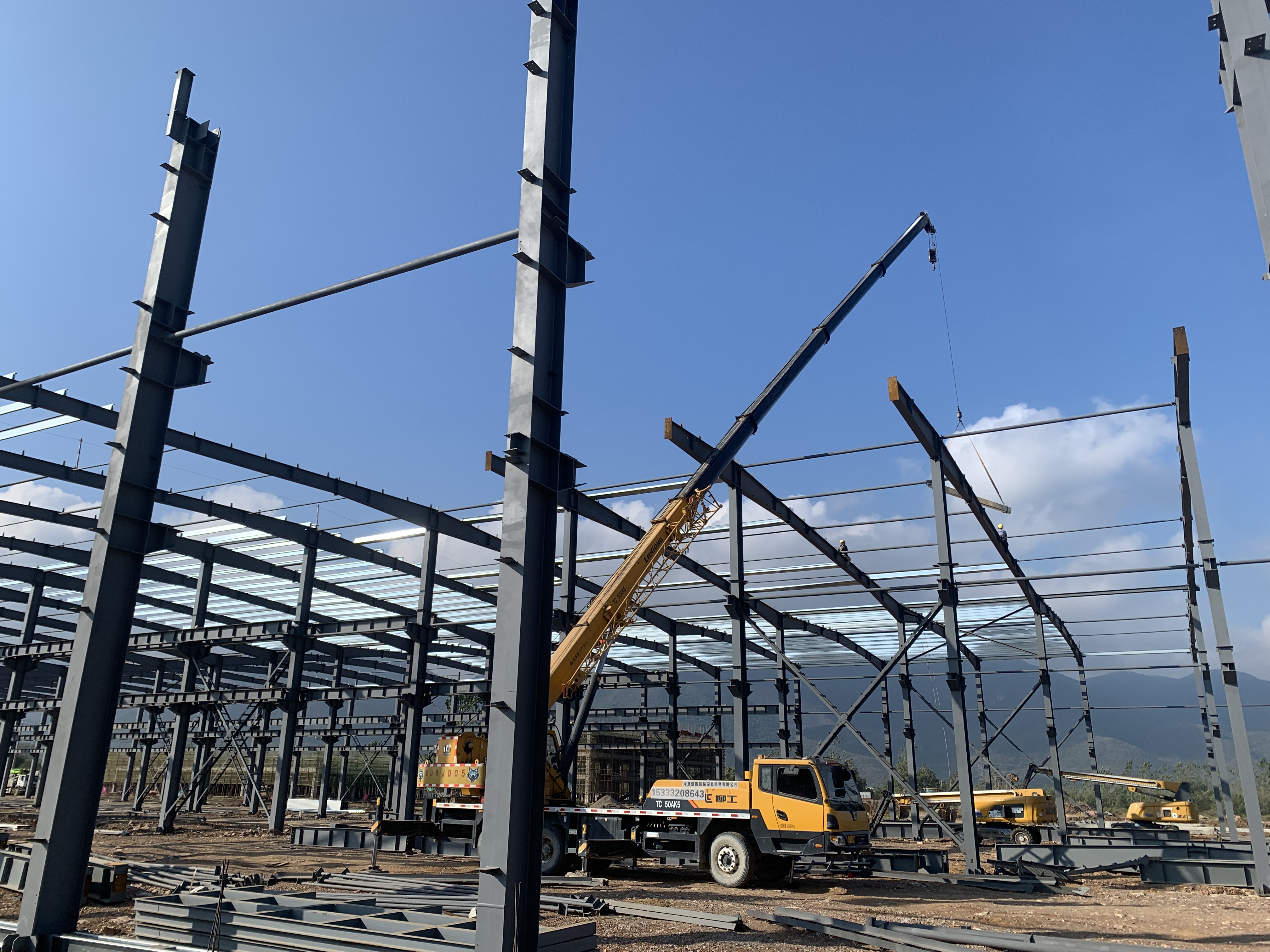 10月3日,阳新县黄颡口镇新型建材产业园华博重工智能装备制造项目基地,工人们正忙碌着装吊钢梁,持续奋战一线,争分夺秒,全力保障华博重工建设和生产进度。
