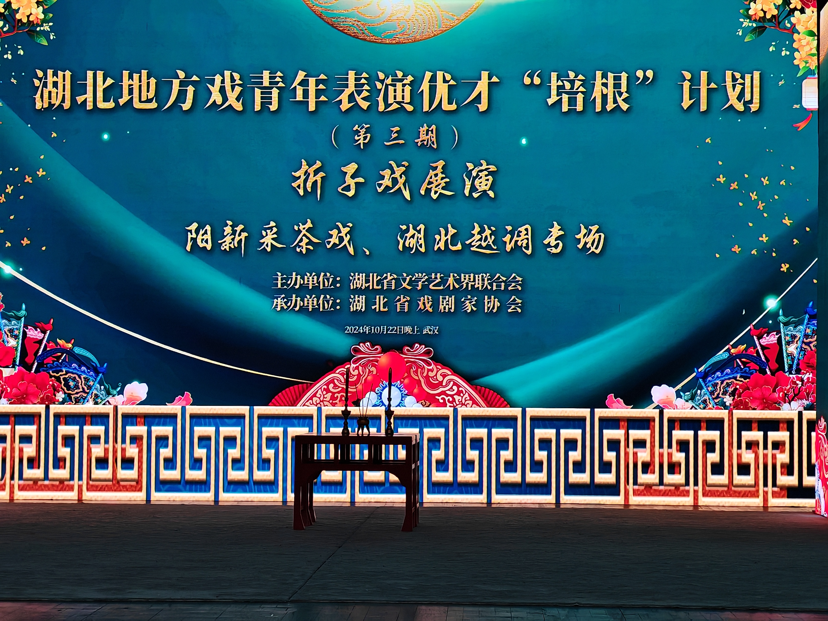 10月22日晚,武汉市楚剧院里热闹非凡,湖北省地方戏(第三期)青年表演优才"培根"计划折子戏展演在此上演。阳新采茶戏传承中心选送的折子戏《打神告庙》在展演上精彩亮相,深受好评。