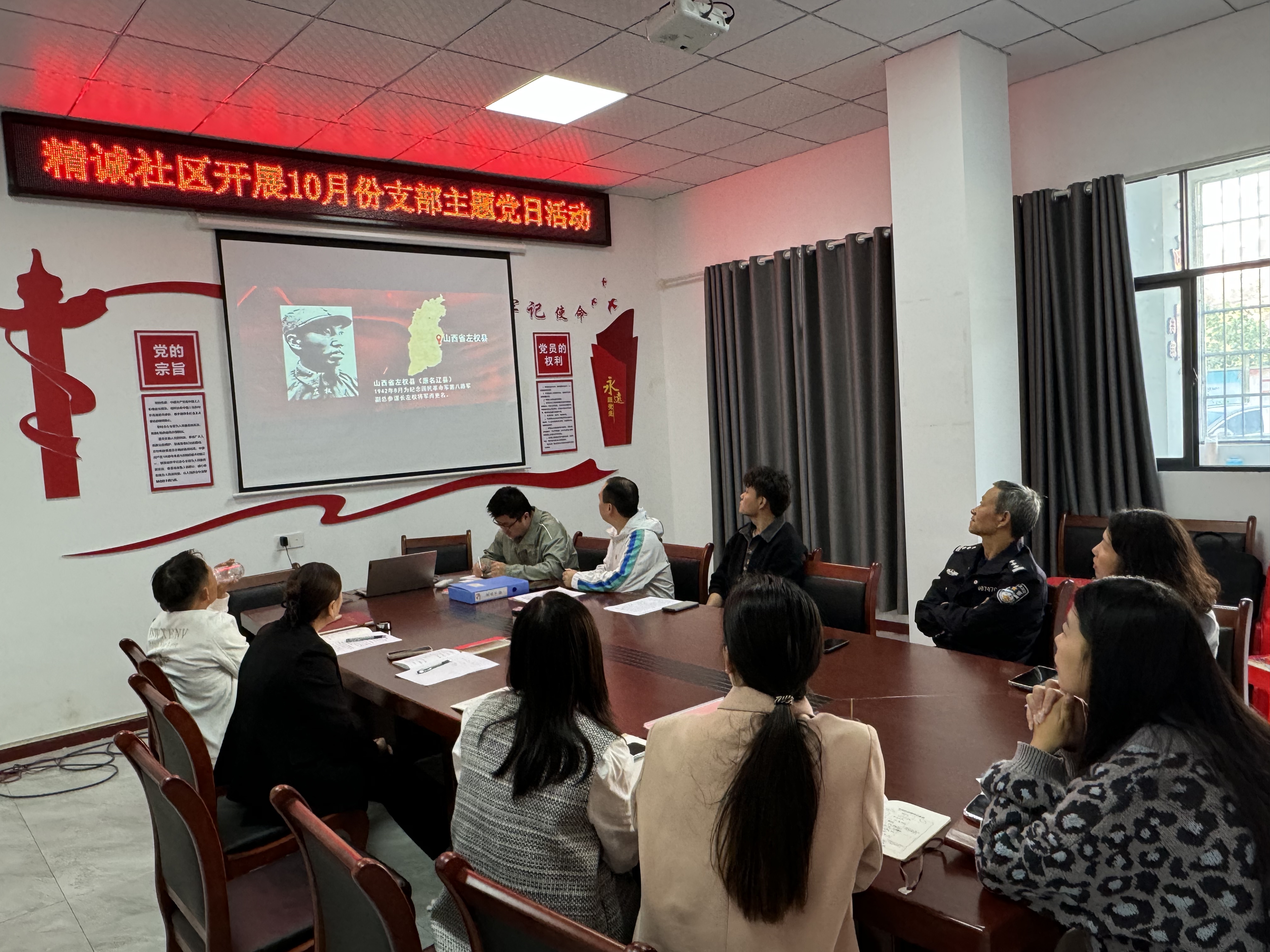 在社区会议内,党员们重温入党誓词,观看了纪录片《抗日英雄黄骅:英魂铸史 赤心永存》,了解了黄骅将军的出生地、工作地、牺牲地,生动再现了黄骅将军的传奇一生,同时也激励着社区党员们以革命先烈为榜样,争做新时代的优秀共产党员。