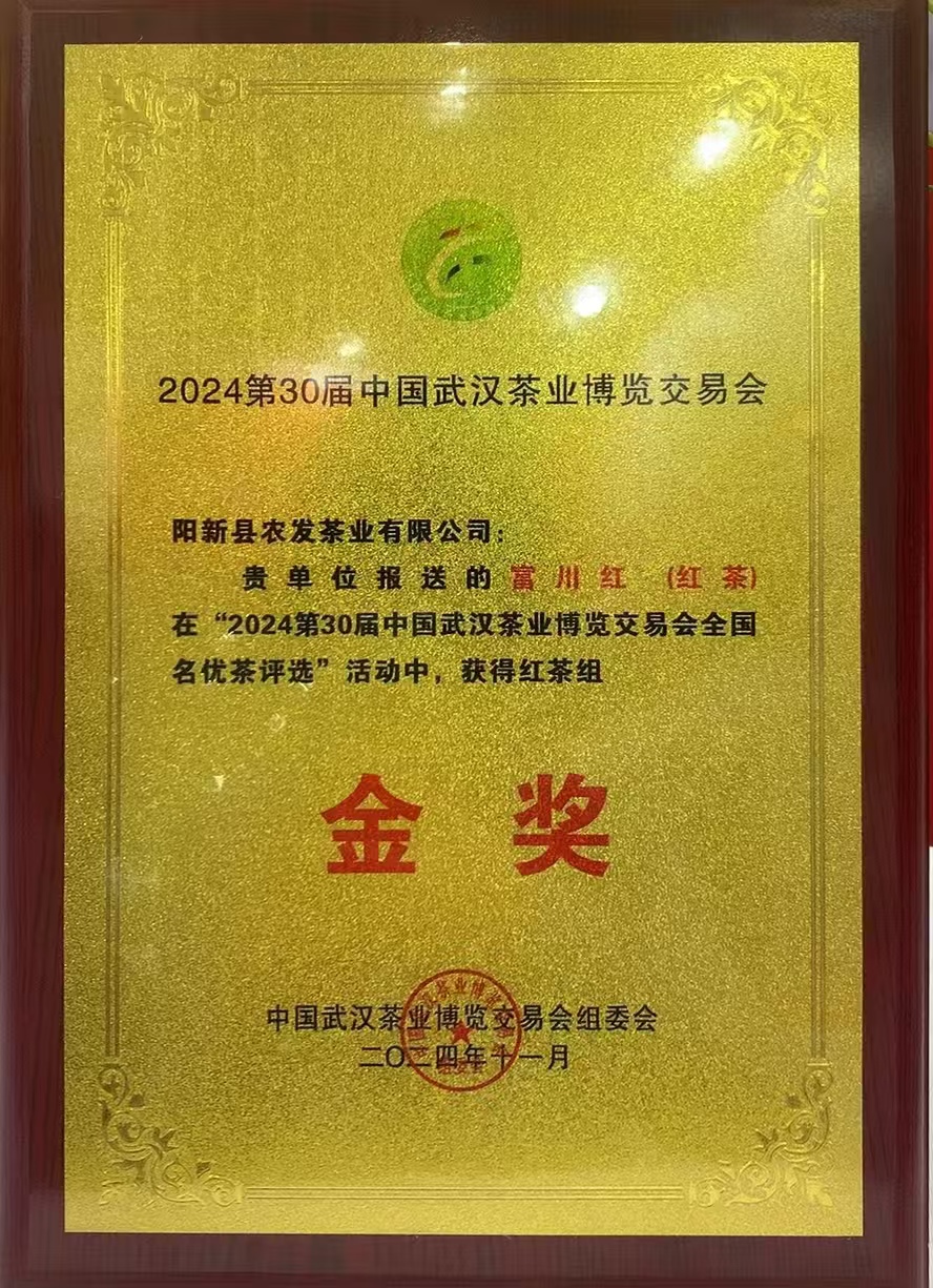 11月1日—4日,2024第30届武汉茶业博览交易会(简称武汉茶博会)在武汉国际会展中心与广大茶友相见。在武汉茶博会上,阳新县推送的茶叶产品中,有七个喜获“2024第30届武汉茶业博览交易会全国名优茶评选”金奖。