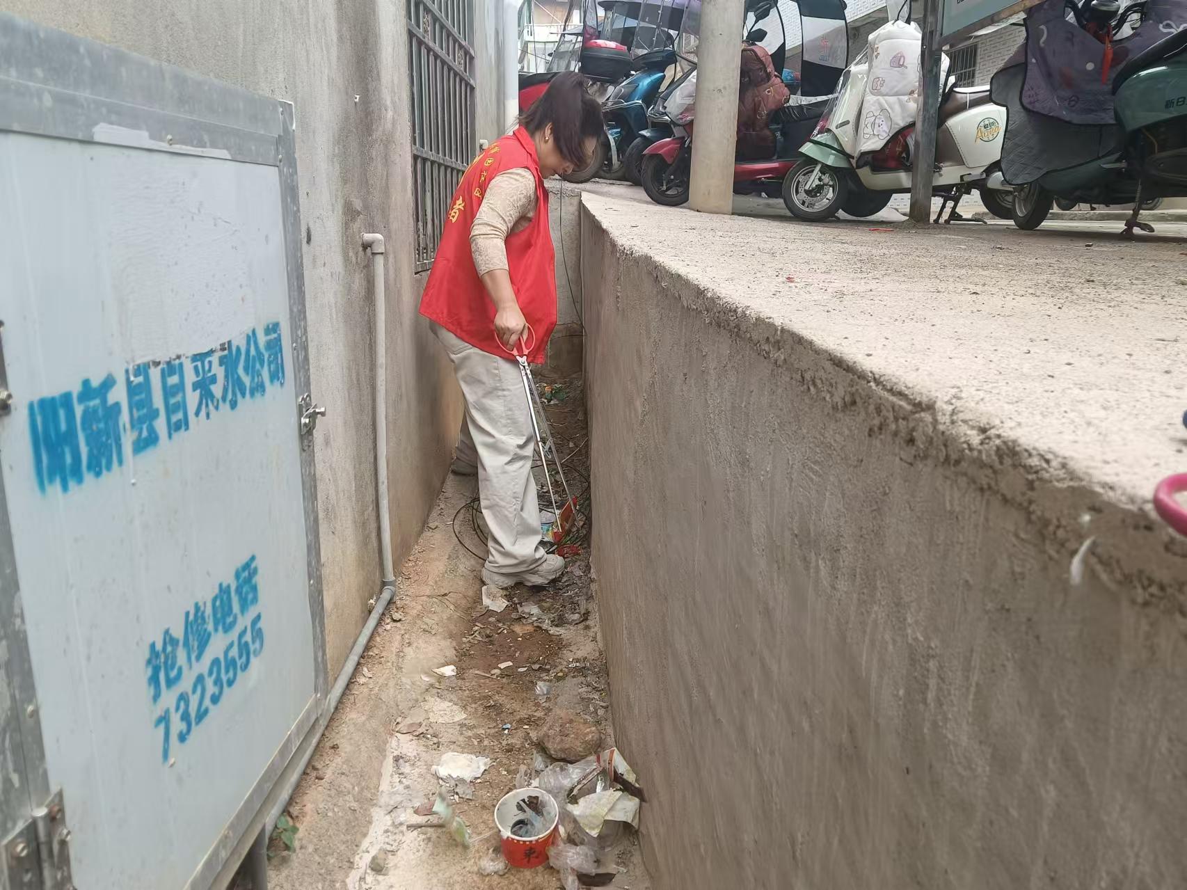 随后,社区新时代文明实践站开展人居环境整治活动,对居民点进行卫生大清扫,及时清理户外的瓶罐、花盆、废弃容器中的积水,消除卫生死角,清除蚊虫孳生繁殖地,同时向居民积极讲解相关知识,提高居民“防”的重要性,提醒居民要及时处理积水,注意房前屋后的环境卫生。