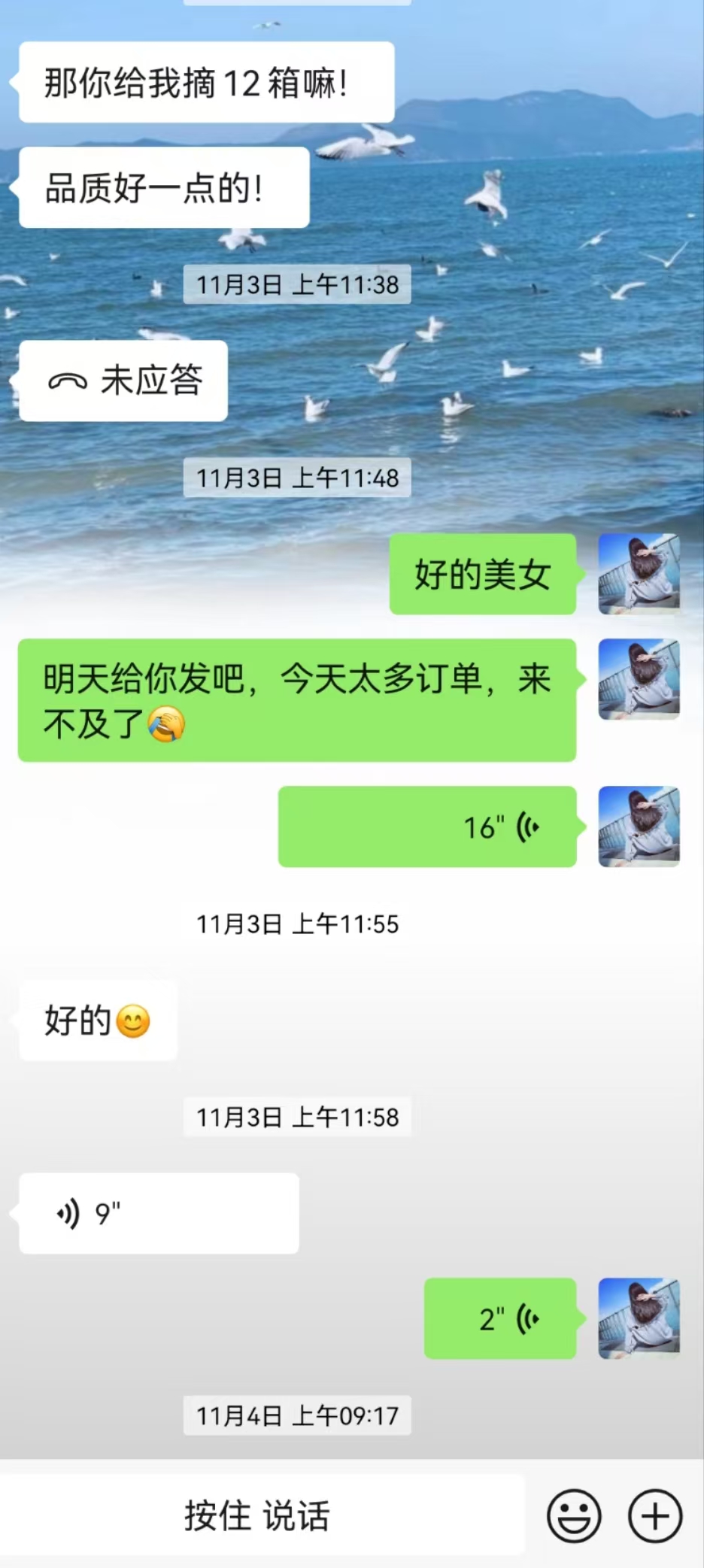11月中旬,马璐就接到一位到阳新出差的内蒙古人留言,说刷到她的视频,对荆头山柑橘很钟爱,想带些柑橘回内蒙古给亲朋好友品尝,但已上返程列车。对方留下地址和打款后,请求马璐当即采摘“红美人”杂柑邮寄到内蒙古。