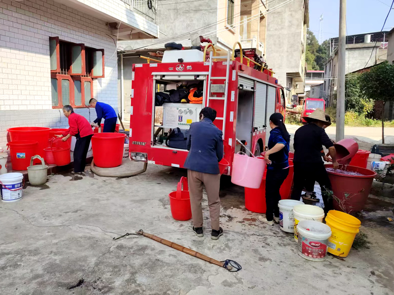 28日,阳新洋港镇潮坑村因连日来受少雨干旱天气影响,蓄水池中存水消耗殆尽,300余名村民生活用水困难,阳新县消防救援大队了解情况后,立即调派洋港镇专职消防队员化身“送水侠”,到村组为群众送去“及时水”。