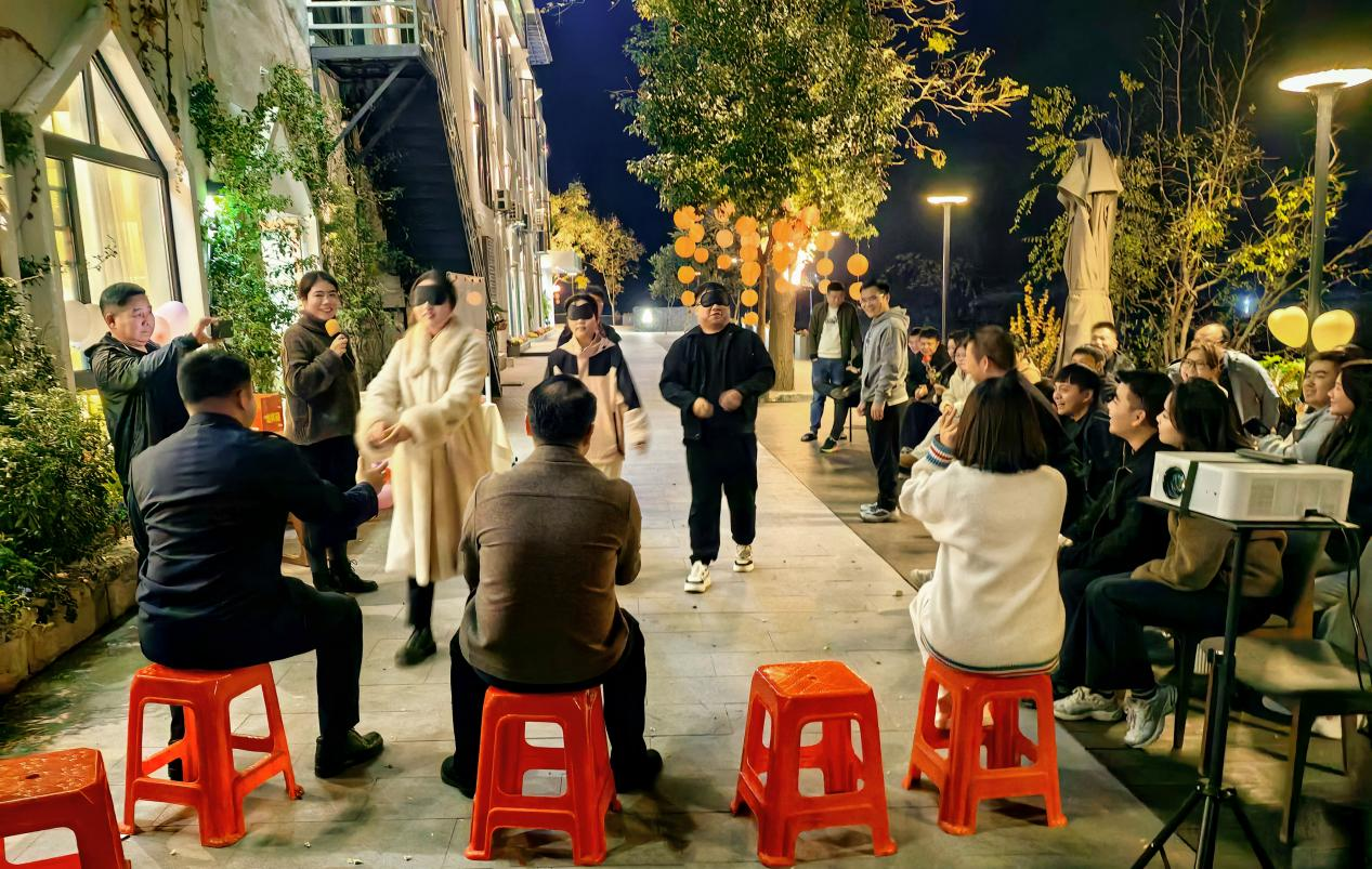活动现场宛如童话场景,鲜花簇拥、气球高悬,玫瑰间鹅黄暖灯与窗外漫天繁星相互映衬,清冷仙岛湖也因此添了几分温馨。在活力幽默的主持人带动下,联谊活动正式开场。“你画我猜” 率先炒热气氛,职工们手舞足蹈、比划不停;随后 “蒙眼投食”“谁是卧底”“音乐抢凳子”“传送气球” 等趣味游戏接连上演,欢声笑语此起彼伏,现场高潮不断,男女青年们在互动中快速破冰,加深了解。