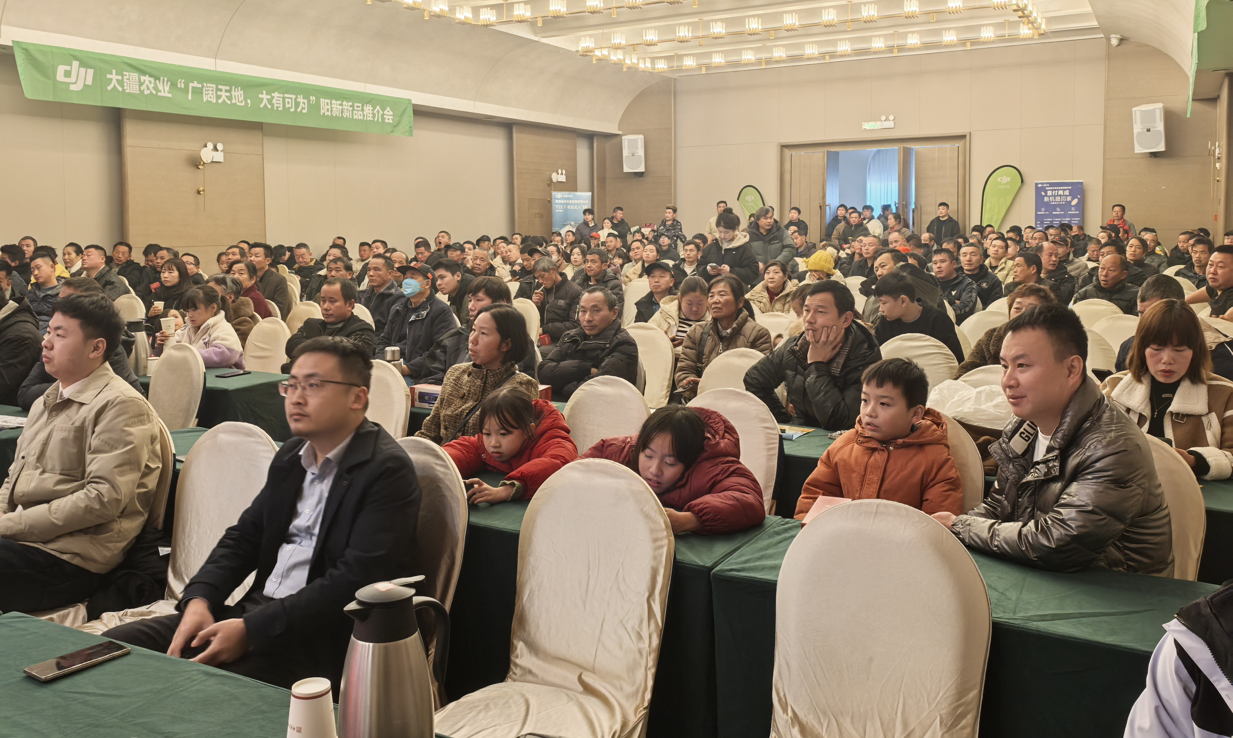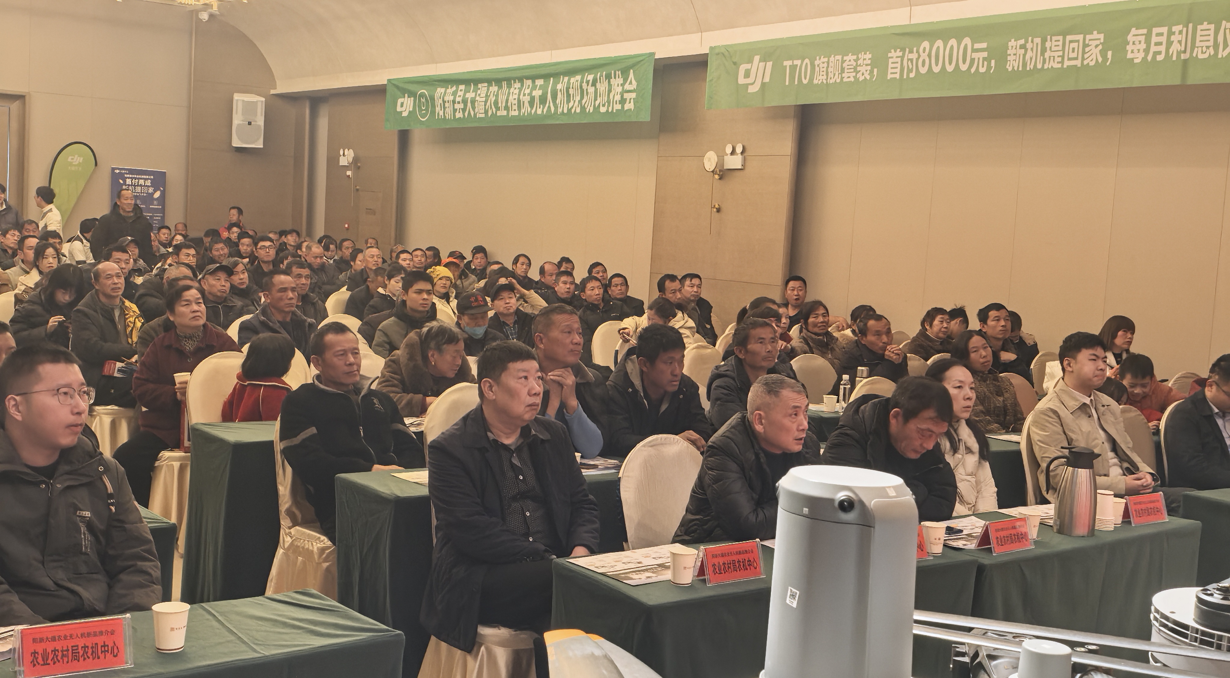 12月15日,初冬,天气越来越冷,城东的一家会议大厅里却人声鼎沸、热闹非凡。阳新大疆植保无人机新品推介会正在这里举办,吸引了全县农业社会化服务组织、农机专业合作社、种植大户、植保飞防作业农机手等360余人参加。