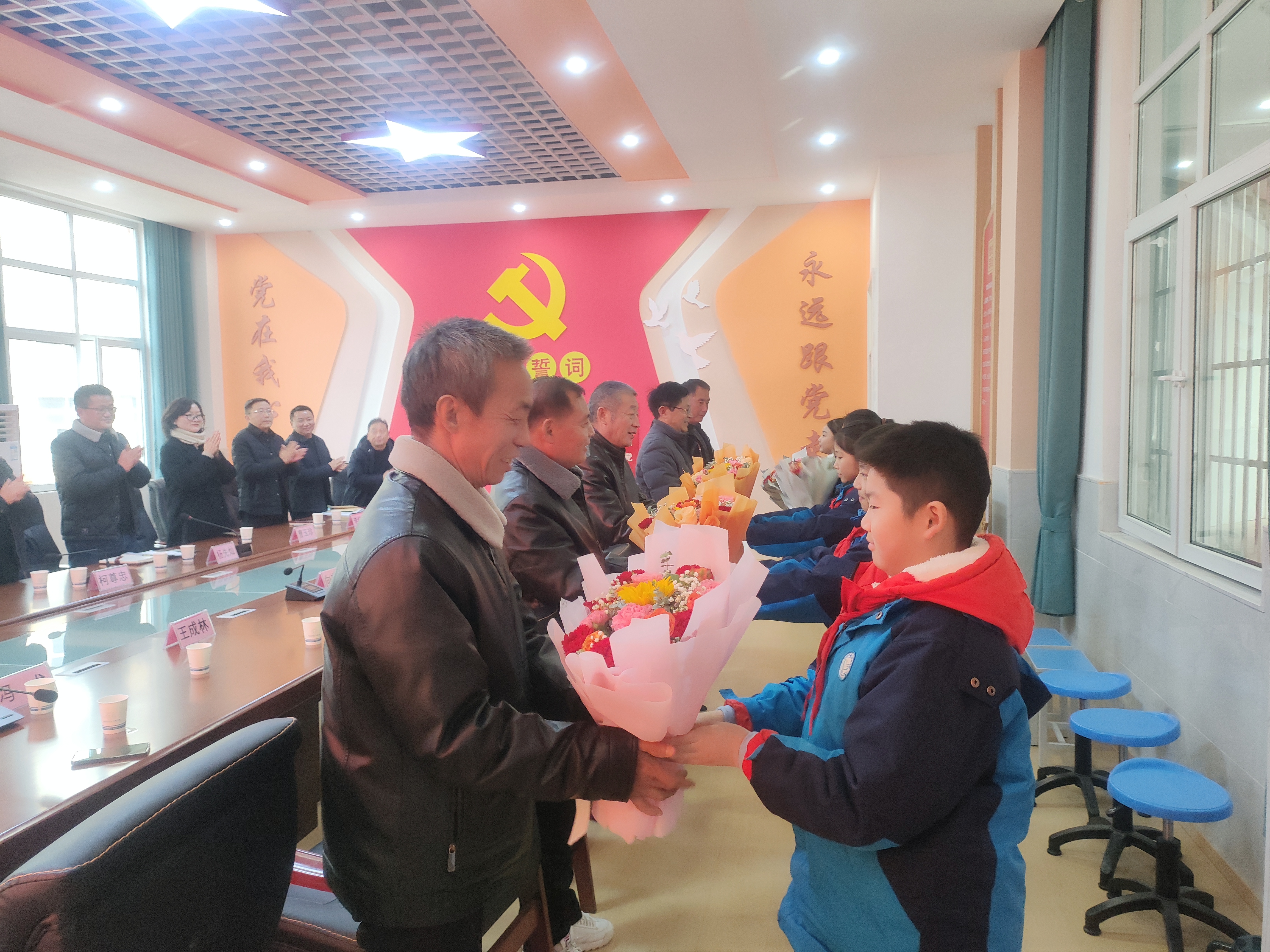 随后,城东教育综合管理室相关负责人柯尊忠、杨先灿先后向荣退教师们送上祝福。少先队员向荣退教师们献上了鲜花,表达了诚挚的敬意。