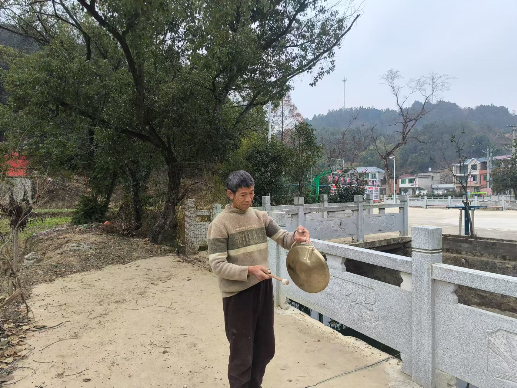 在龙港镇岩泉村,经常会听到一遍遍敲锣声和着一声声吆喝在村头巷尾、田间山上回响。