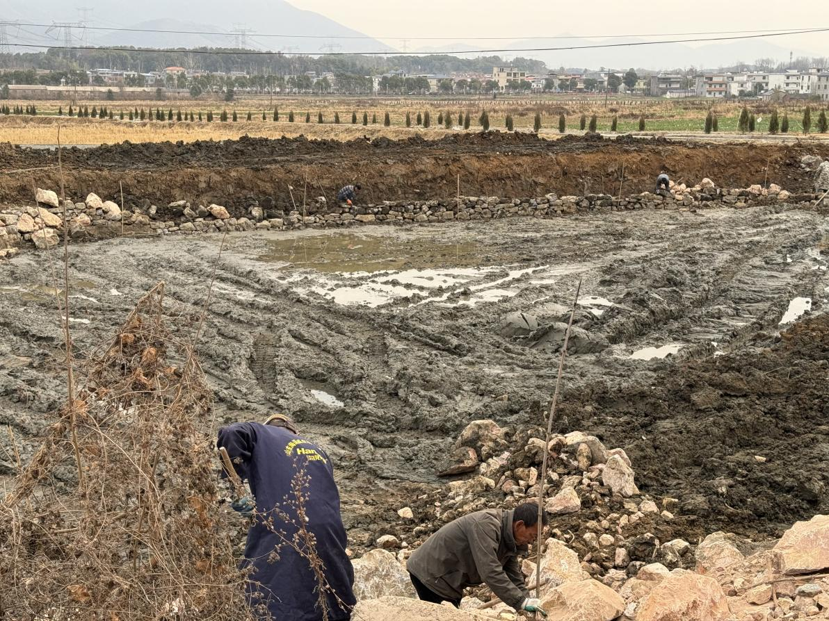 为了改变这一现状,官塘村启动了池塘清淤工程。村“两委”发动群众投工投劳,用双手和汗水为池塘“洗脸”。在寒冷冬日,为这口1.74亩的池塘清淤0.5米,使原本浑浊、泥泞的“淤泥塘”恢复了往日的清澈与宁静。塘边,新砌的块石浆砌护栏如同忠诚的卫士,守护着这片水域的安全。村民们还在塘边安装了大理石栏杆,为池塘增添了几分雅致与美观。如今,这口池塘已经成为一个集休闲、观赏、垂钓于一体的多功能场所,成为官塘村的一张亮丽名片。