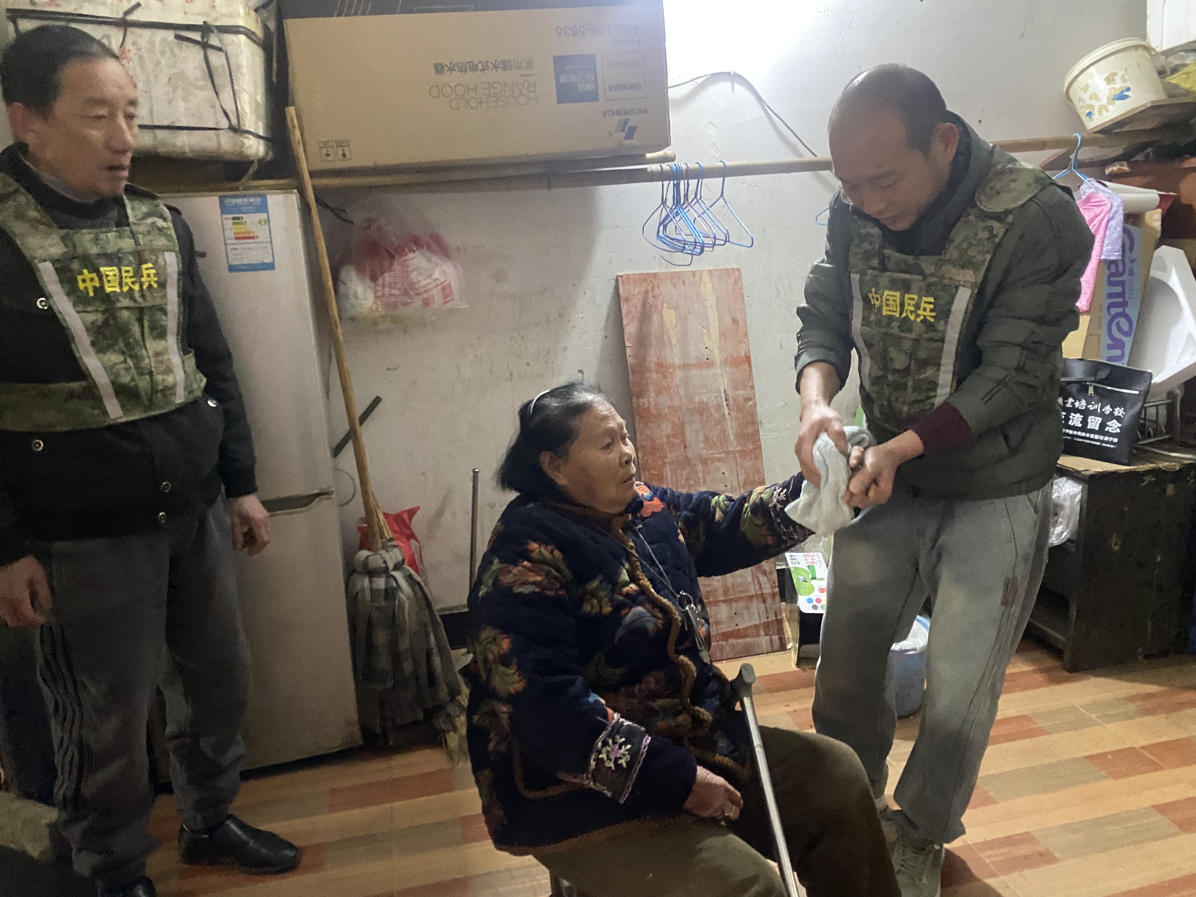 当天上午,社区民兵队员分为多个服务小组奔赴居民家中开展服务活动。在孤寡老人王义全家中,爱心帮扶小组不仅为老人们打扫房间、擦拭家具,还耐心检查水电设施,确保老人生活安全。大家认真倾听老人们的生活琐事与心声,欢声笑语回荡在屋内,为平日里略显冷清的家带来了浓浓温情。