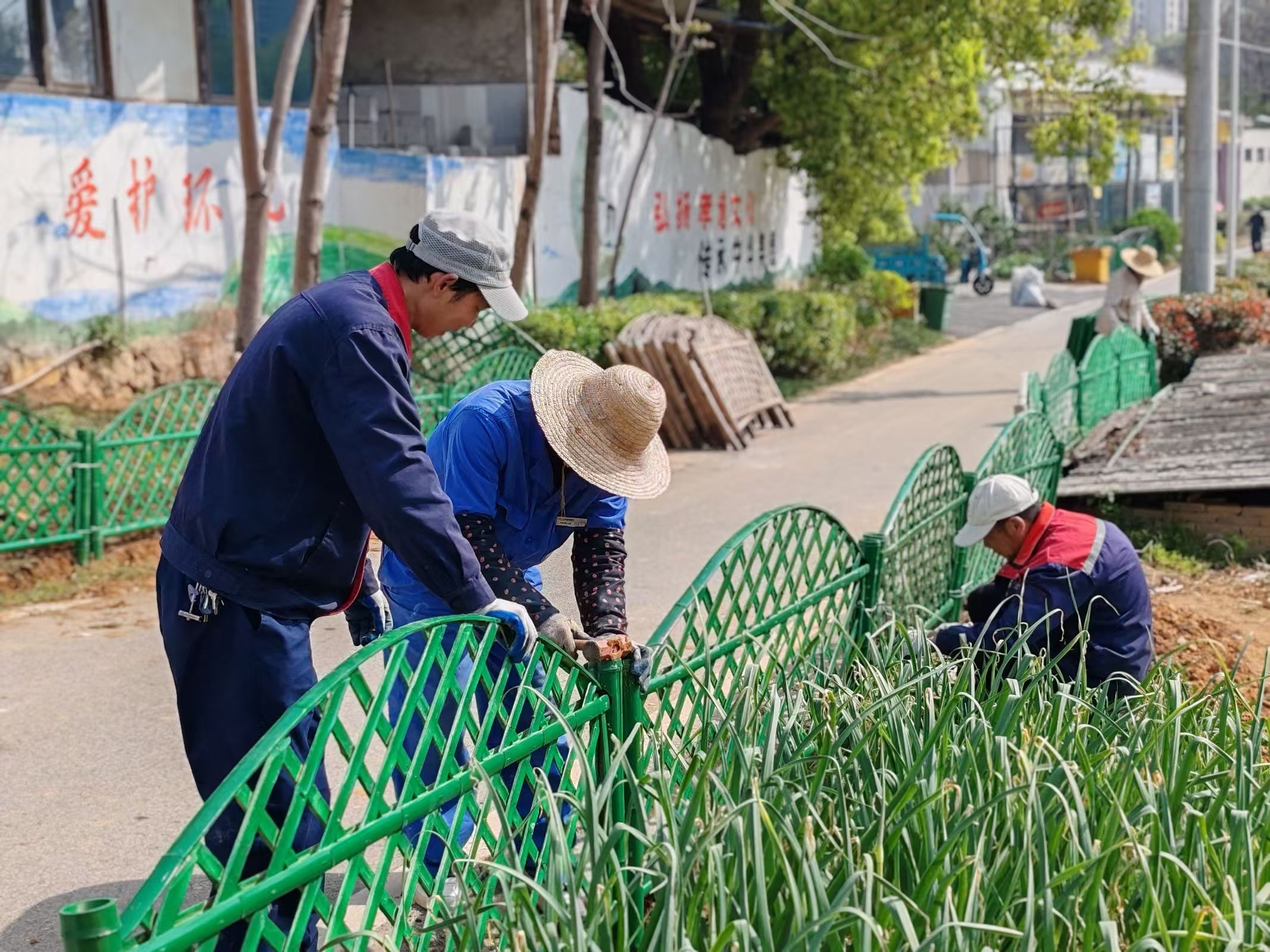 在新华居民点环境整治行动中,新湖社区党员志愿者手持工具,翻新斑驳竹篱:更换腐朽部分、扶正歪斜结构、刷漆防蚀加固。这一行动不仅提升了社区环境,更被转化为生动的“廉政党课”。