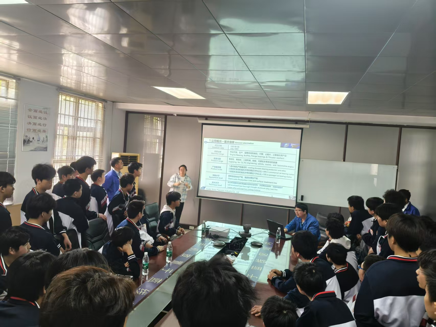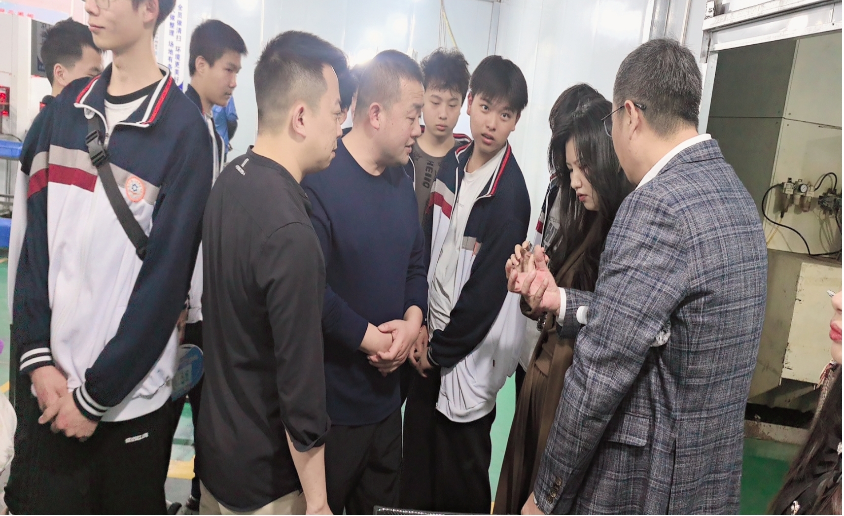 活动中,师生代表先后走进阳新县城北工业园湖北安达精密工业有限公司。通过实地观摩生产车间、技术研发中心及员工生活区,学生直观了解了企业运营模式、技术应用场景及现代化管理模式。企业负责人围绕“智能制造转型”进行专题讲解,并现场演示工业机器人操作流程,让学生切身感受技能人才在产业升级中的核心价值。