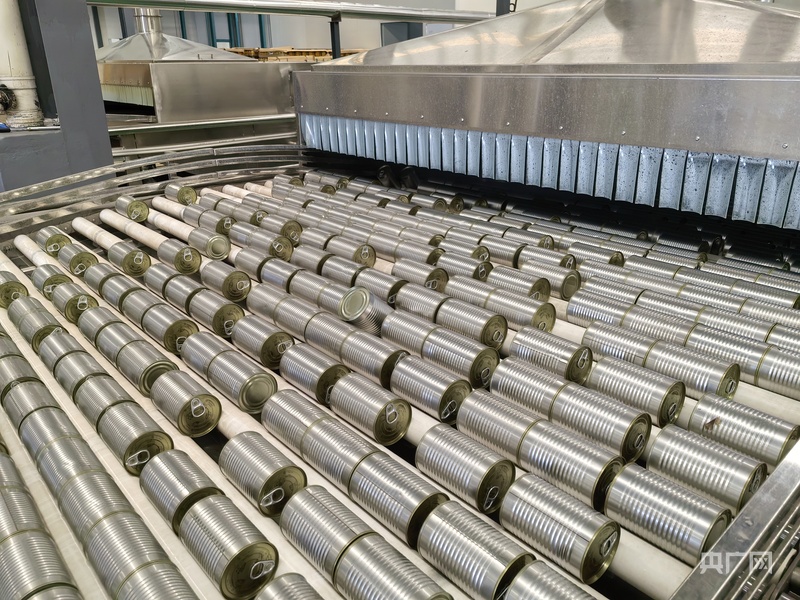 生产线上封装好的罐头(央广网记者赵玲 摄)