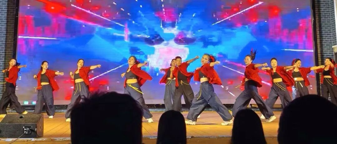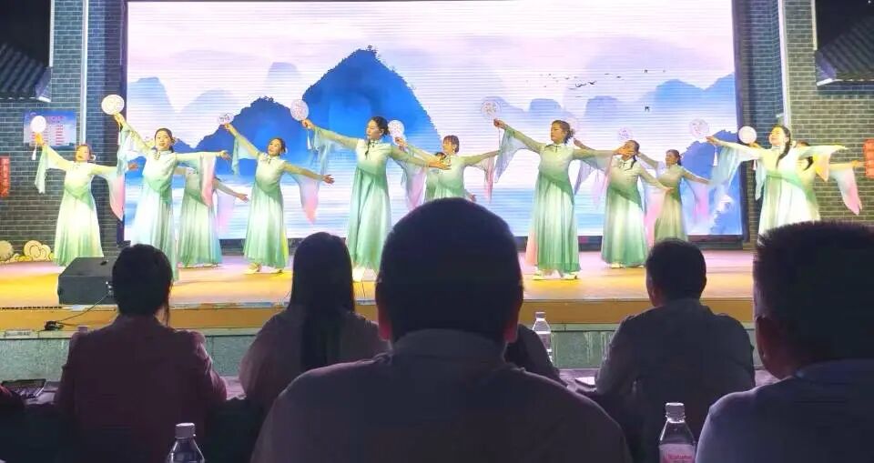 全镇各村的参赛队伍身着鲜亮服饰,围绕《水墨中国》《福到咱家》等贴合地域特色的旋律起舞,部分队伍还融入“红色主题”等创意元素,将自然之美与人文活力巧妙融合。台下掌声、喝彩声不断,不少游客用手机记录精彩瞬间。