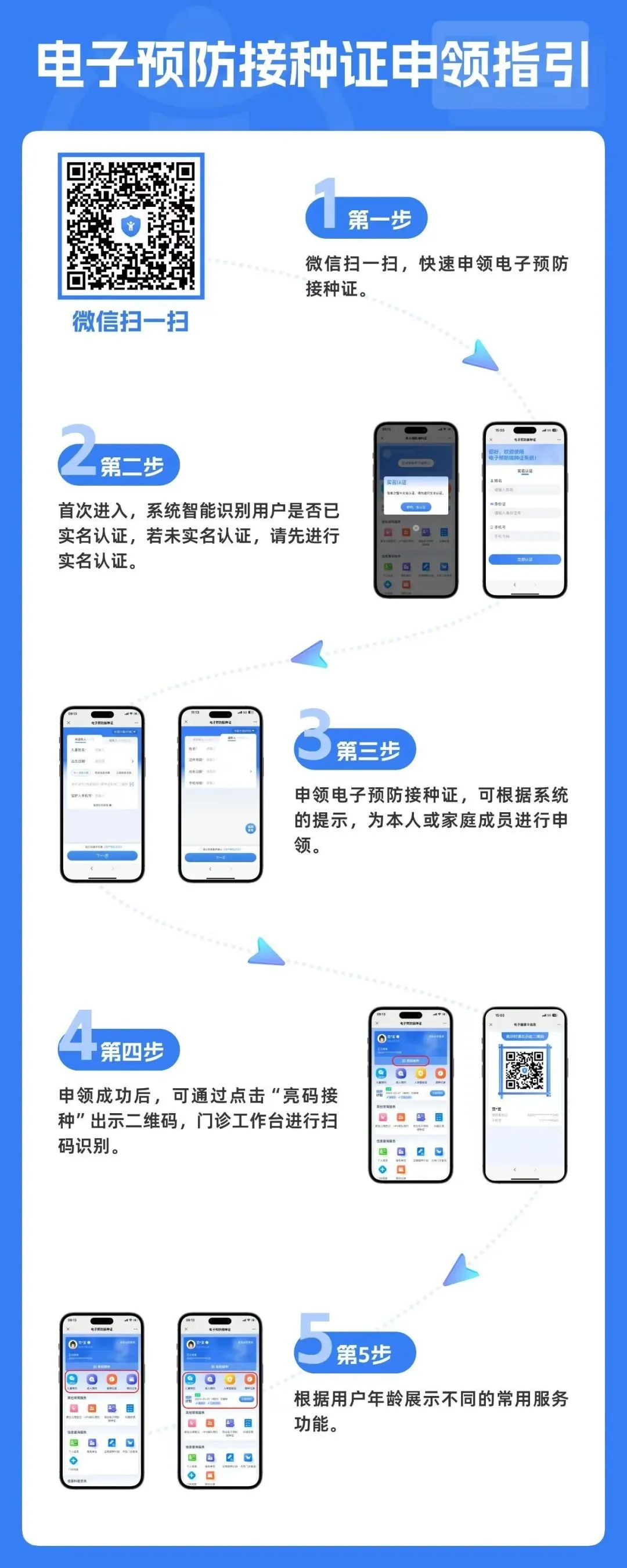 电子预防接种证从根本上解决了原来纸质接种证携带不便、易丢失、难查询等问题,实现接种信息查询、疫苗预约接种、接种提醒、入托入学接种证查验、了解疫苗知识等服务功能,您可以随时随地查看您或孩子的接种记录。