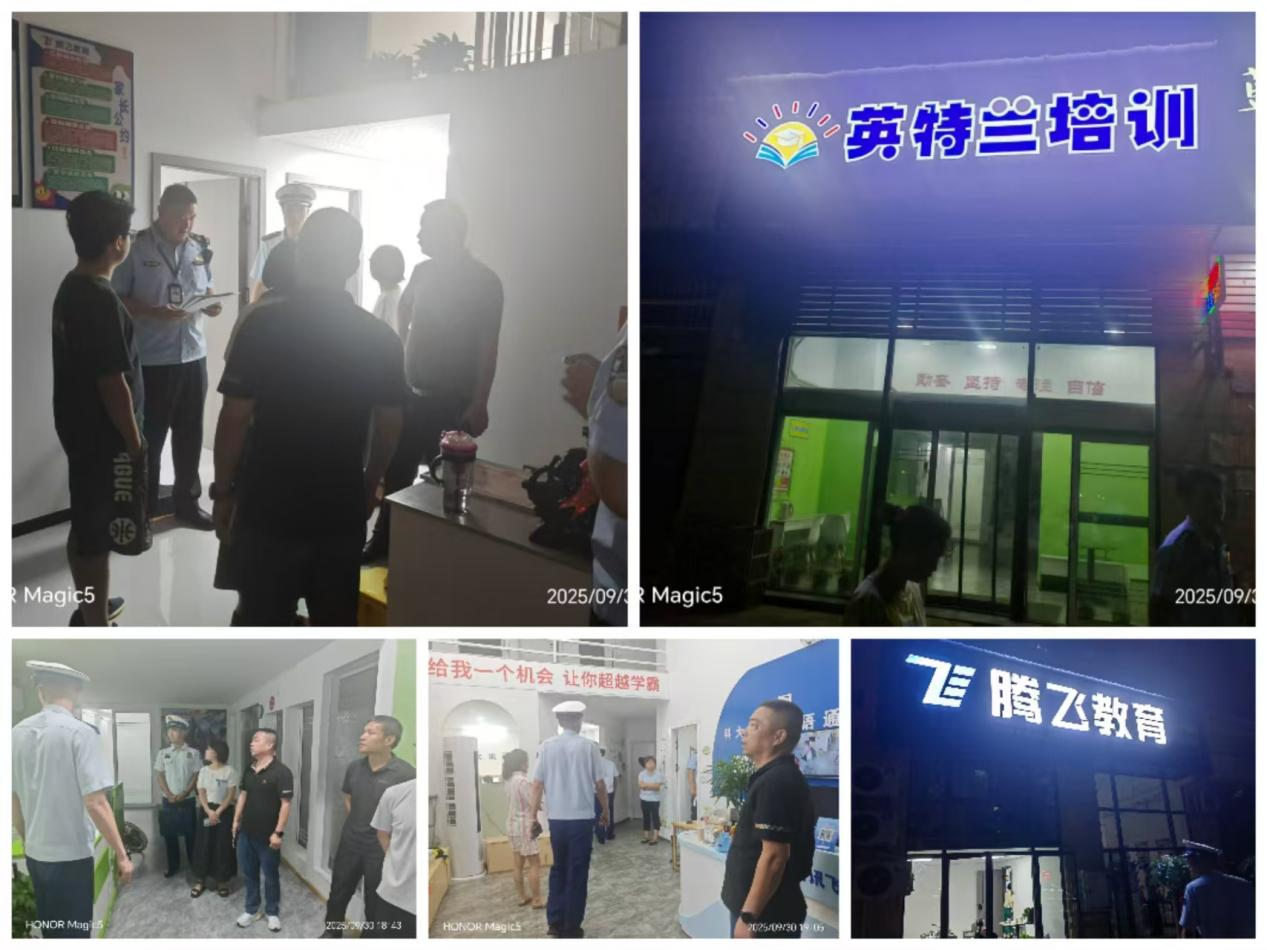 为巩固“双减”工作成效,防止国庆期间违规培训反弹回潮,9月30日晚,县教育局联合县公安局、市场监管局、文旅局、科技局、消防救援大队等部门组成联合检查组,对城区重点区域的托管机构、自习室等场所开展夜间突击检查。