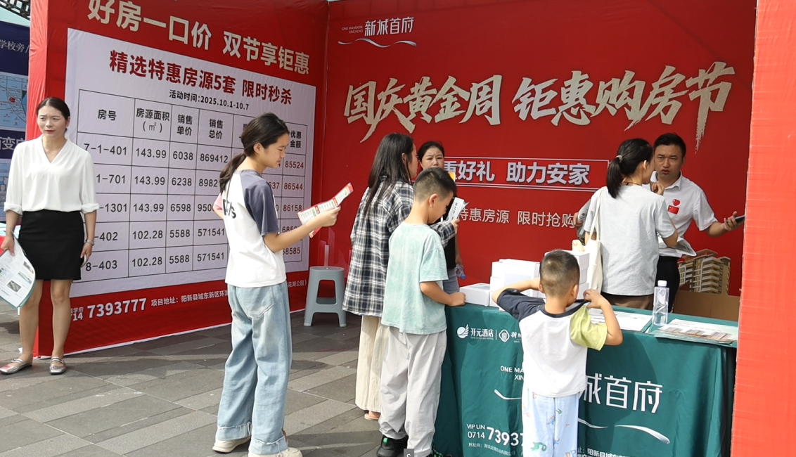 活动现场,县住建局搭建政策宣介平台,将住房公积金、金融支持、契税与生育补贴等一揽子利好政策带到展销现场,提供权威解读。14家参展企业推出“一口价”、专属折扣、购房送家电等促销活动,形成了政府与企业同频共振的惠民合力。