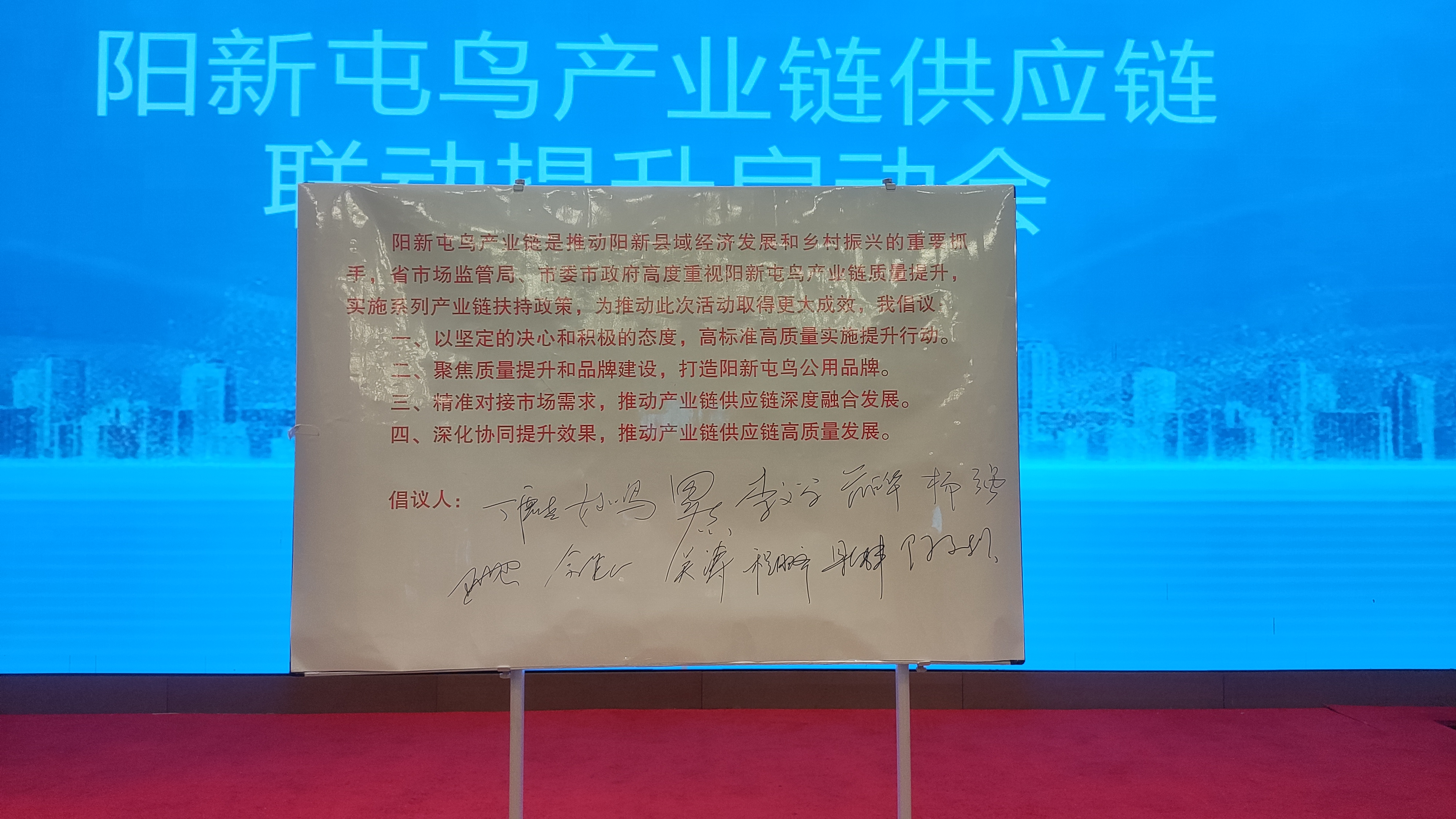 11月7日,我县举行阳新屯鸟产业链供应链联动提升启动会。会议聚焦国家地理标志产品“阳新屯鸟”的高质量发展,旨在推动其迈向标准化、品牌化、现代化。省、市市场监管部门及全国多家商超、餐饮、电商平台相关负责人齐聚一堂,共谋发展。