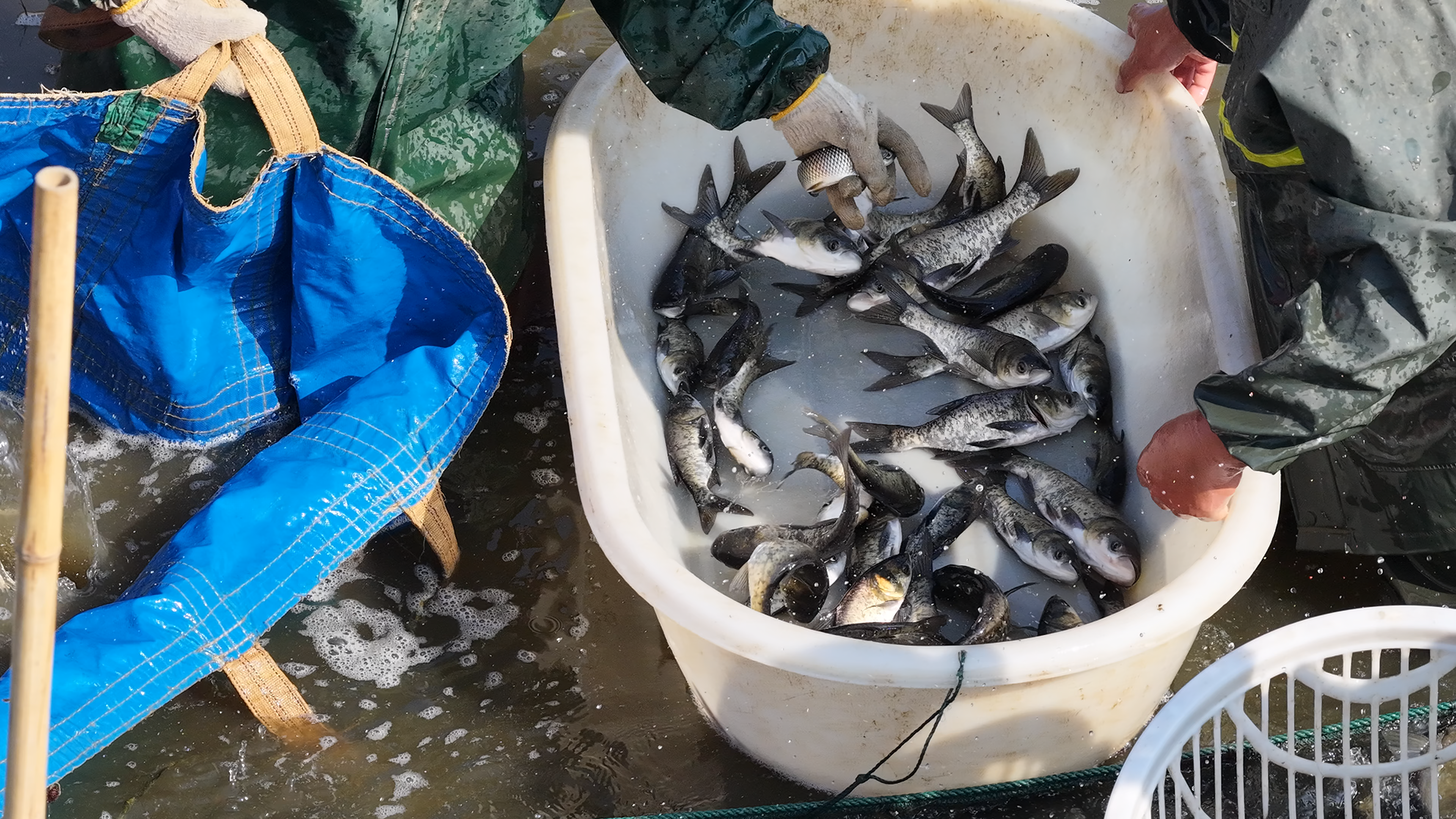 本次丰收捕鱼的现场,宛如一幅动人的渔歌画卷。在朝阳的映照下,波光粼粼的鱼塘里,工人们协作配合,肥美的鳜鱼在网中翻腾跳跃,溅起阵阵水花,与人们脸上洋溢的喜悦笑容交织在一起,奏响了乡村振兴的“丰收曲”。