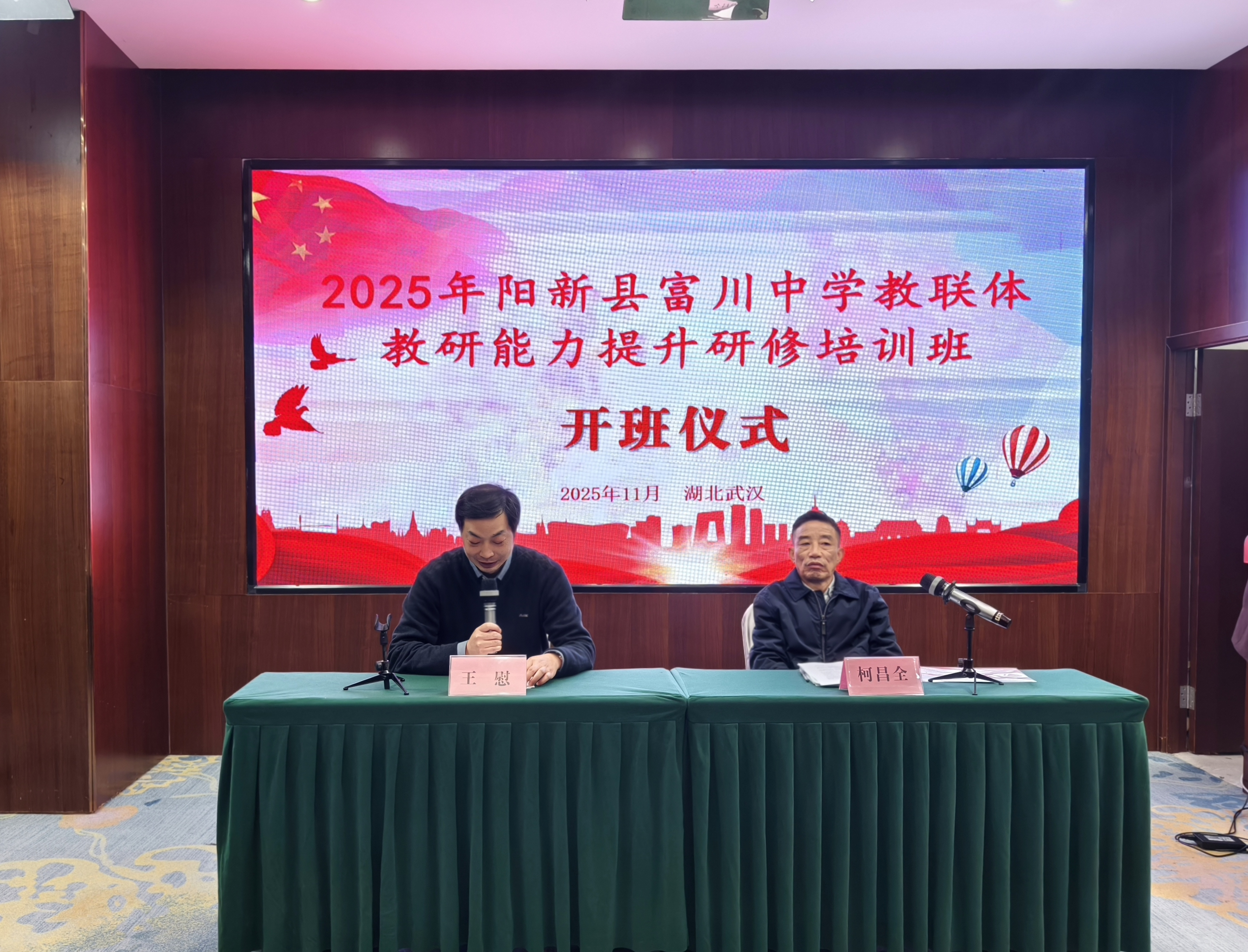 当天下午的开班典礼上,全体教师重温了庄严的教师誓词。湖北长江报刊传媒集团领导首先致辞,随后富川中学党总支书记柯昌全对参训教师提出殷切期望,强调了教研工作在推动学校高质量发展中的核心作用。
