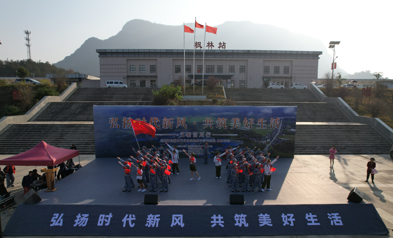 1日下午,由县新时代文明实践中心、县委宣传部主办,枫林镇新时代文明实践所、枫林镇人民政府承办的阳新县第四期新时代文明实践“文明富川行”活动在枫林镇高铁站广场火热举行。本次活动以“党的声音进万家”为主题,通过理论宣讲、文艺演出、互动交流、便民服务等多种形式,将党的创新理论与文明实践活动紧密结合,让基层群众在参与中感悟思想伟力、共享文明成果。市委宣传部副部长、市文明办主任樊进,县委常委、宣传部部长陈淑芳,副县长廖洋波、吴昌斌出席活动。