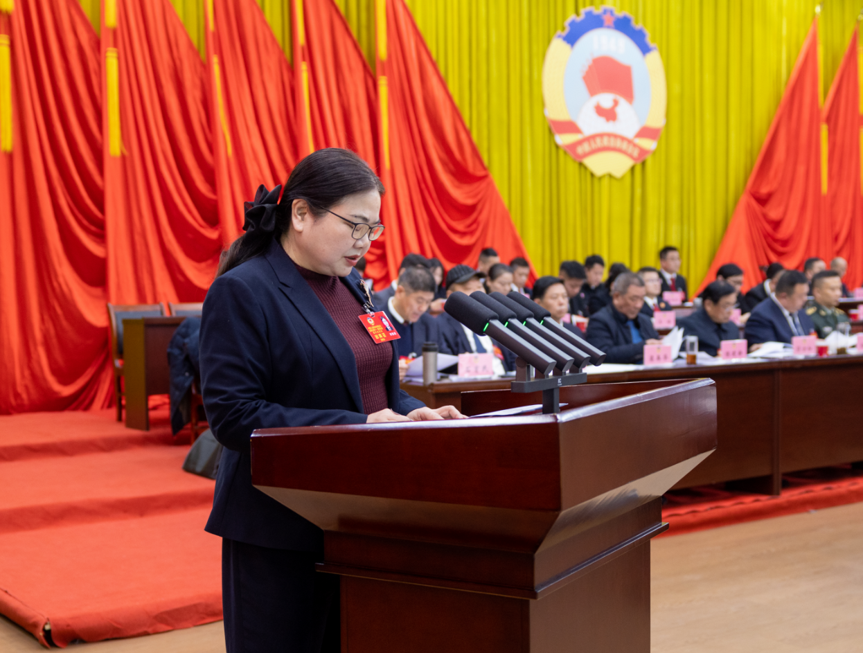 受政协阳新县第十一届委员会常务委员会委托,周银娣向大会报告十一届五次会议以来的提案工作情况。