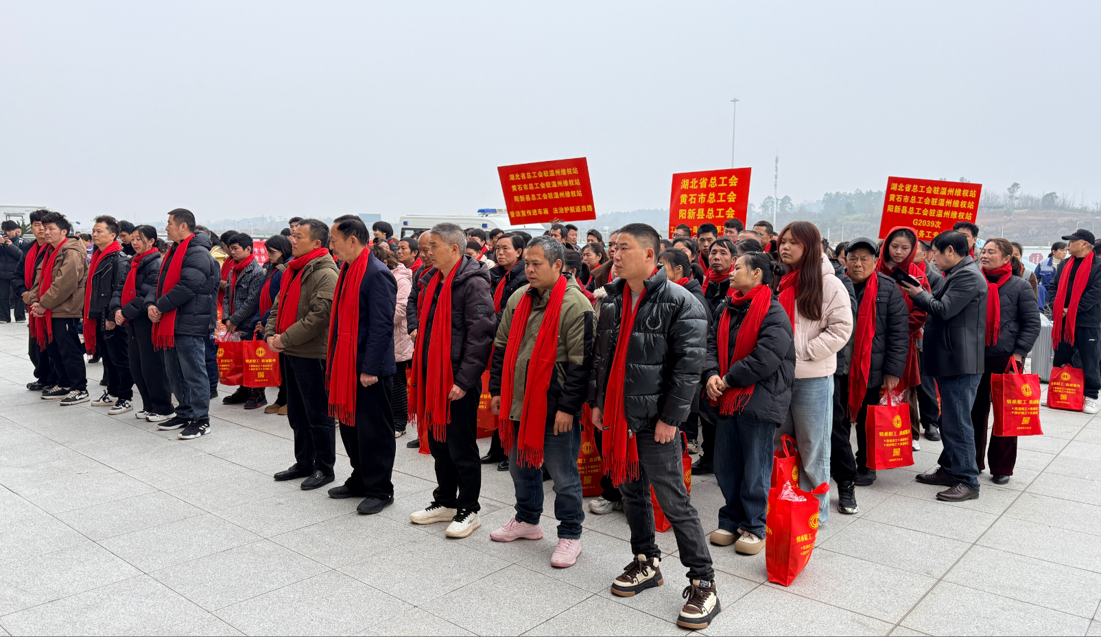 5日上午,县总工会在高铁站举行2026年“工会护航·温暖返岗”农民工返岗服务活动,为137名赴温州务工人员送上返岗保障与新春祝福,以暖心服务护航务工人员平安顺畅返岗复工。市县总工会相关负责人参加活动。