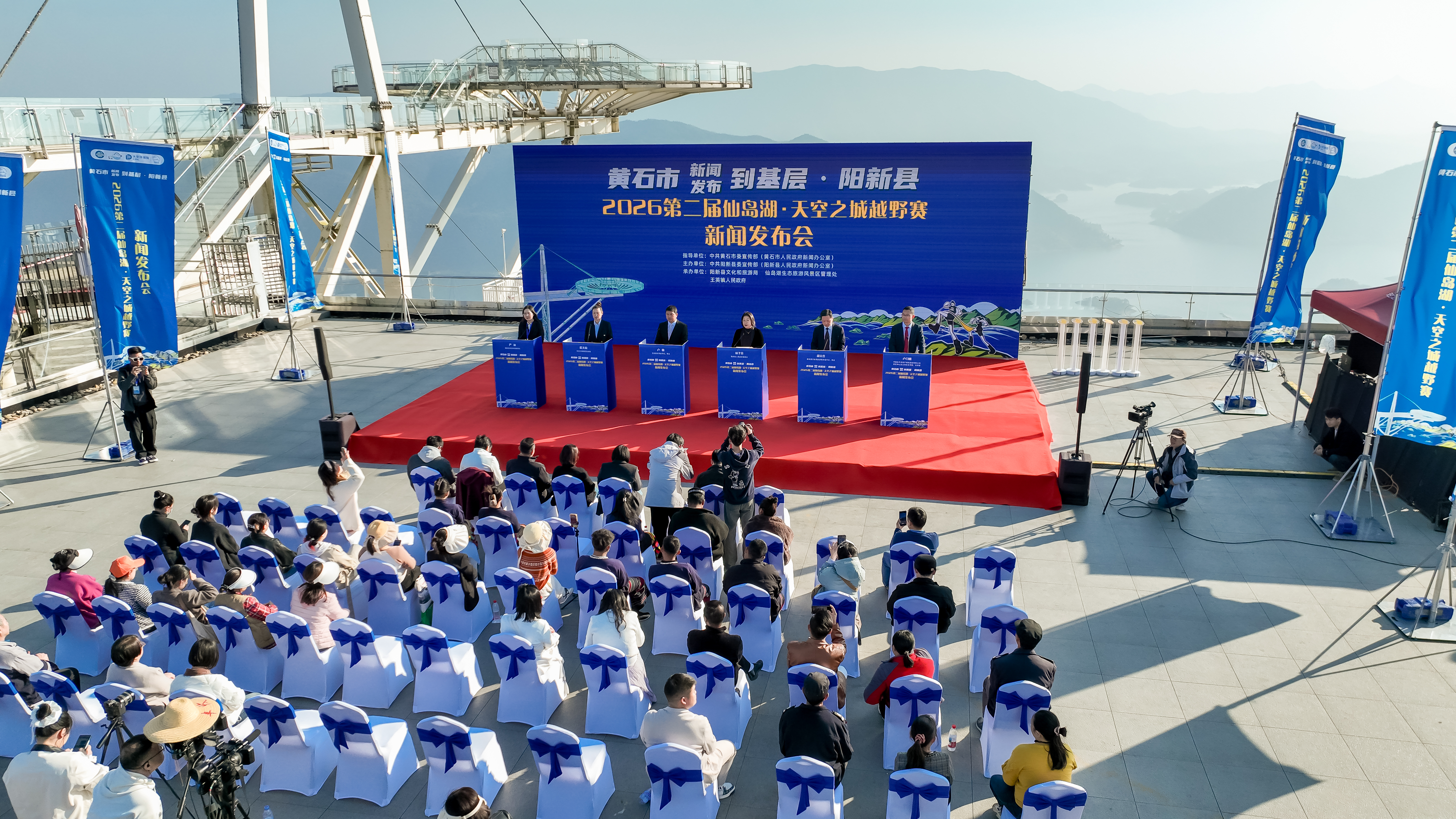 3月13日,湖北阳新在当地天空之城景区“天空之镜”观景平台召开新闻发布会,宣布2026第二届仙岛湖·天空之城越野赛定于4月19日(星期日)上午7:00鸣枪起跑。
