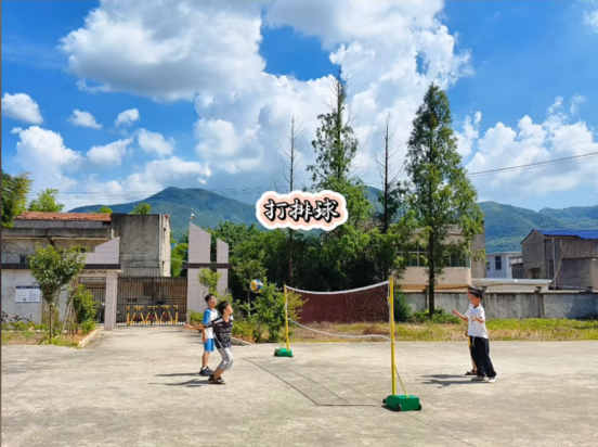 这是军山村大学生、爱心托管班志愿者队长吕梓杰在 2025 年暑假拍下的珍贵瞬间: 军山村小的操场上,几个孩子正追着排球奔跑,球影与白云青山、村落屋舍相映成画。这样鲜活的乡野运动场景,在当下农村里格外难得。它也牵起了我们这群志愿者的回忆 —— 那 些并肩筹备爱心托管班的日子,那些陪着山里娃成长的时光,都藏在这颗腾空的排球里,藏在这片被爱点亮的山野间。