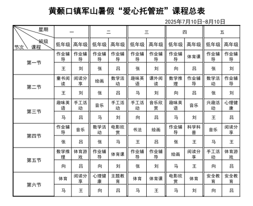 军山村太平小学教师王功利,作为军山教学点原校长,有着丰富的乡村教学经验,他提出“在玩中学,在学中玩”的托管教学理念。他全程参与作业辅导、课程把关,用耐心与细心陪伴孩子成长;金星村的马老师,毕业于湖北师范大学汉语言专业,发挥专业特长,为孩子们开设童书阅读、趣味英语课程,带着孩子们在文字里感受世界的美好;70 岁的周堡村退休教师柯玉升,不顾年事已高,计划为孩子们教授书法课,希望在一撇一捺间,将传统文化的种子播撒在孩子心中。