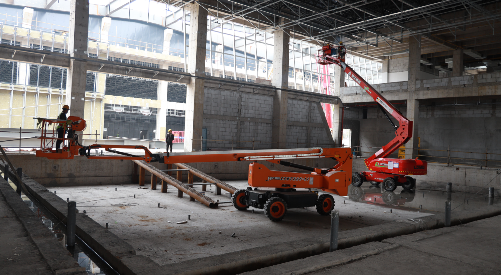 在项目现场,记者看到两座现代化的场馆已经拔地而起,整个项目已经进入装饰装修的关键阶段。这里塔吊林立、机器轰鸣,工人们正在各自点位上有序作业,一派热火朝天的建设景象。