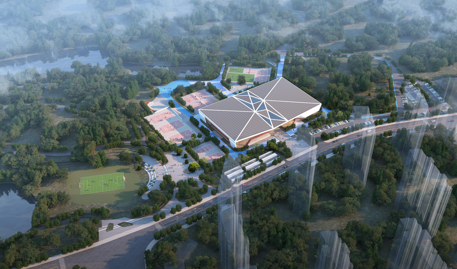 除了两座现代化的场馆,项目还配套建设室外运动场地、户外拓展区、入口广场等设施。考虑到市民的出行与休闲需求,项目同步规划了停车场、充电桩以及室外大型显示屏。未来,这里不仅将配备专业的体育设施设备,还将引入国民体质监测设备,成为阳新市民家门口的“健身乐园”和“健康管家”。
