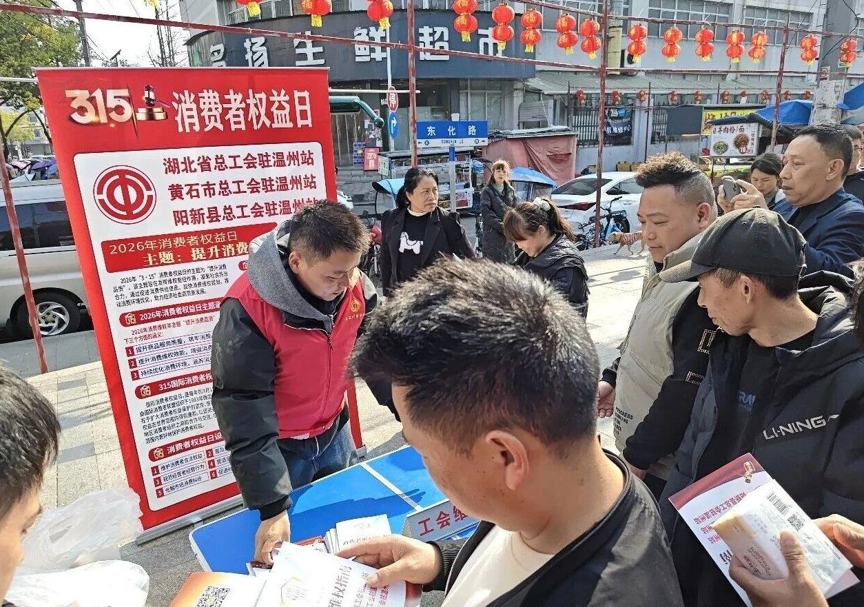 为纪念第44个“国际消费者权益日”,深入贯彻“守护安全 畅通消费”年主题精神,提升广大职工群众依法维权意识,湖北省总工会驻温州维权站、黄石市总工会驻温州职工维权服务站、阳新县总工会驻温州维权站于3月15日前后,组织开展了形式多样的“3·15”国际消费者权益日法律宣传系列活动。