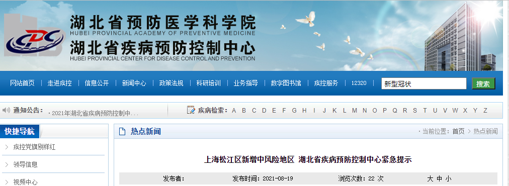 一、2021年8月4日(含)以来有上海市松江区旅居史的来鄂返鄂人员请主动向当地社区进行健康申报,并配合当地疫情防控指挥部的所有防控措施。如有疑问可拨打我省各级疾控中心咨询热线,号码附后。