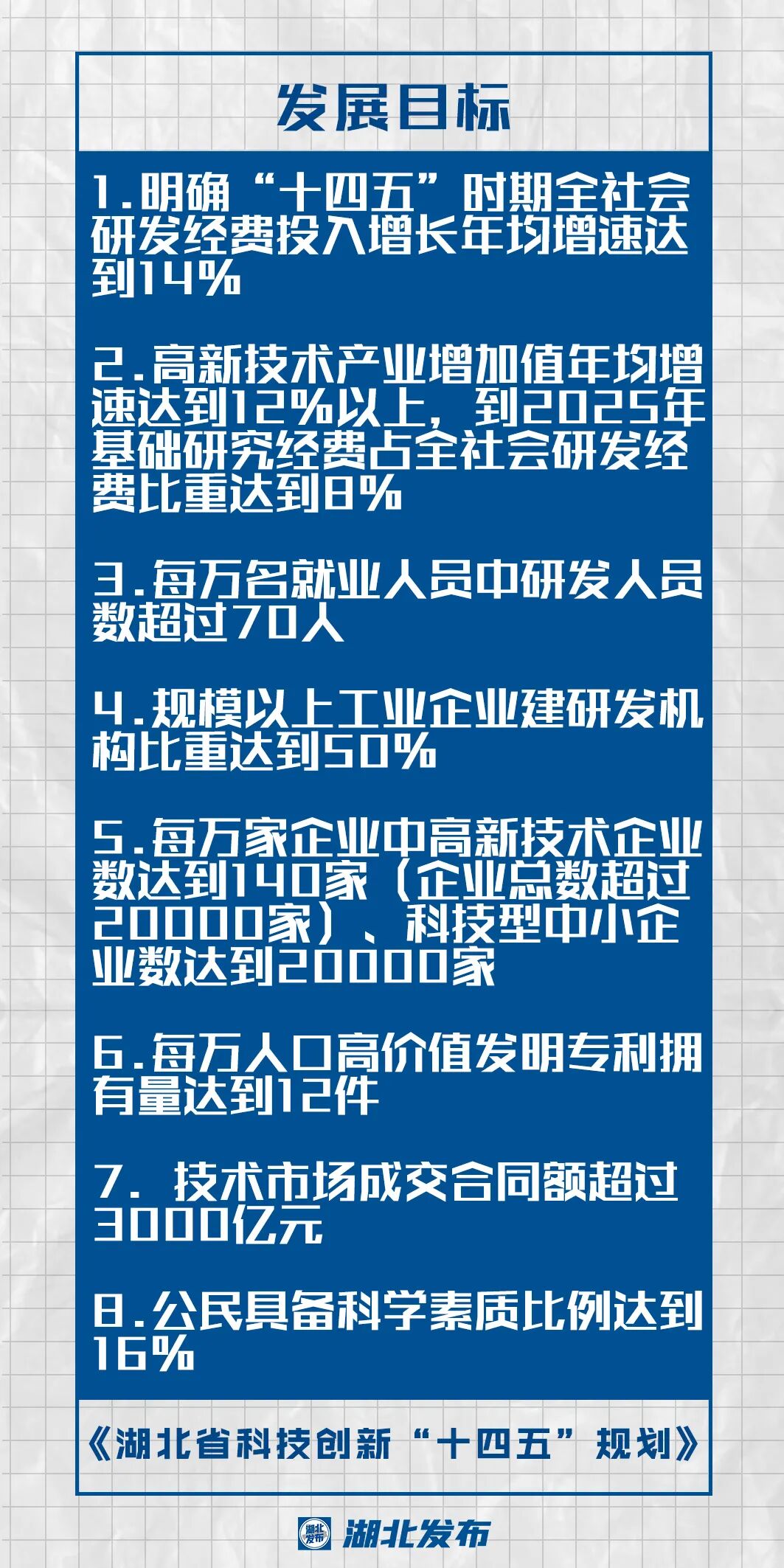 《湖北省科技创新“十四五”规划》(简称《规划》)