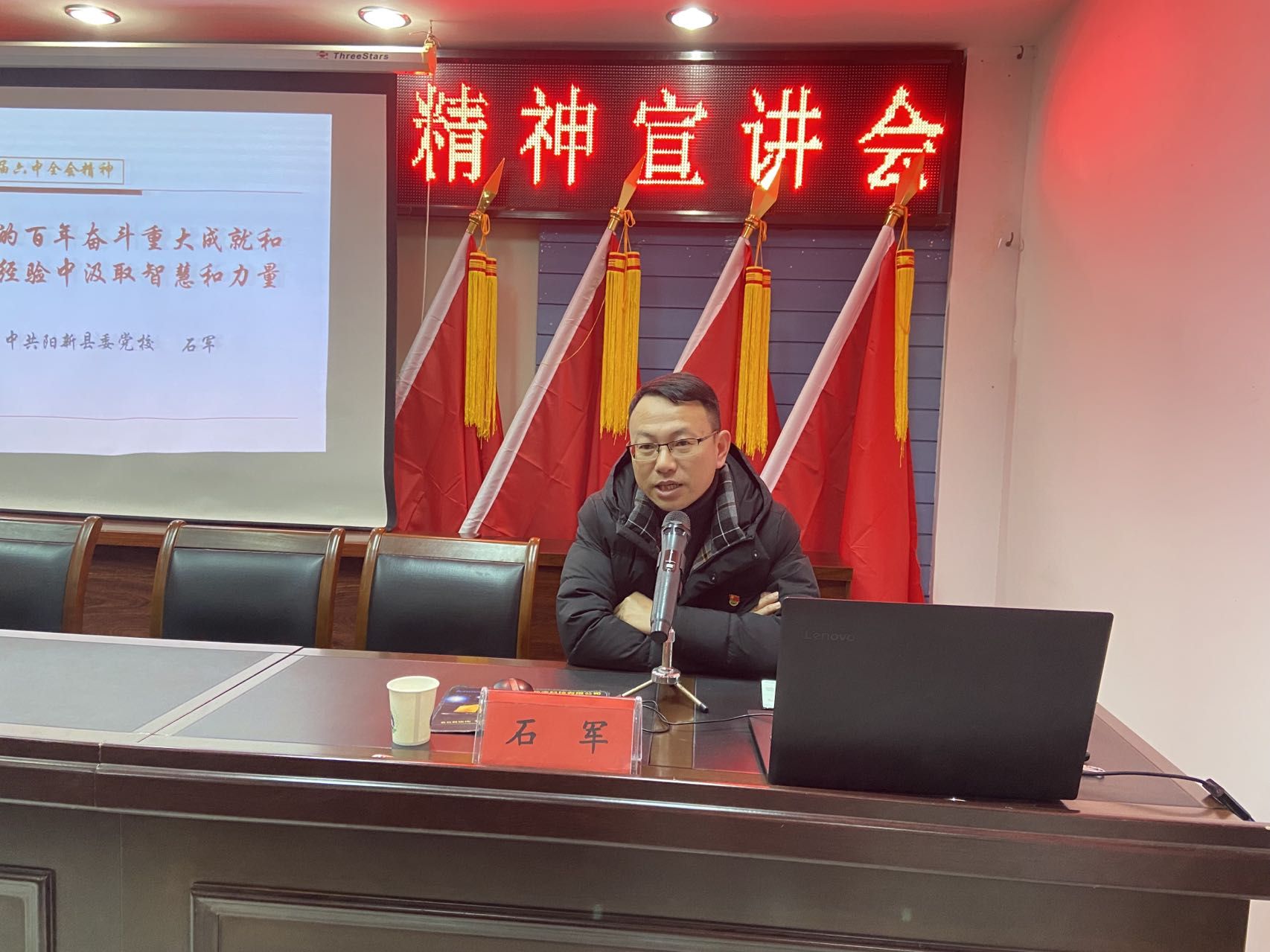 为深入学习贯彻党的十九届六中全会精神,6日上午,阳新县洋港镇召开十九届六中全会精神宣讲会,邀请县委宣讲团成员、县委党校副校长石军进行专题宣讲,全体镇干部、各村支部书记、各镇直机关单位负责人参加。