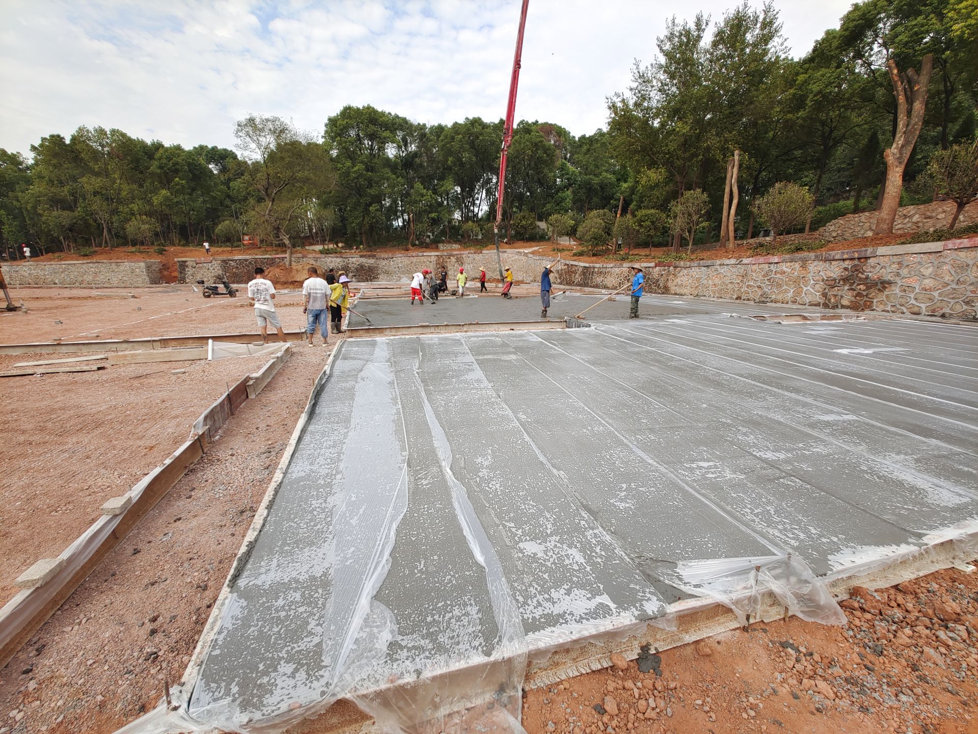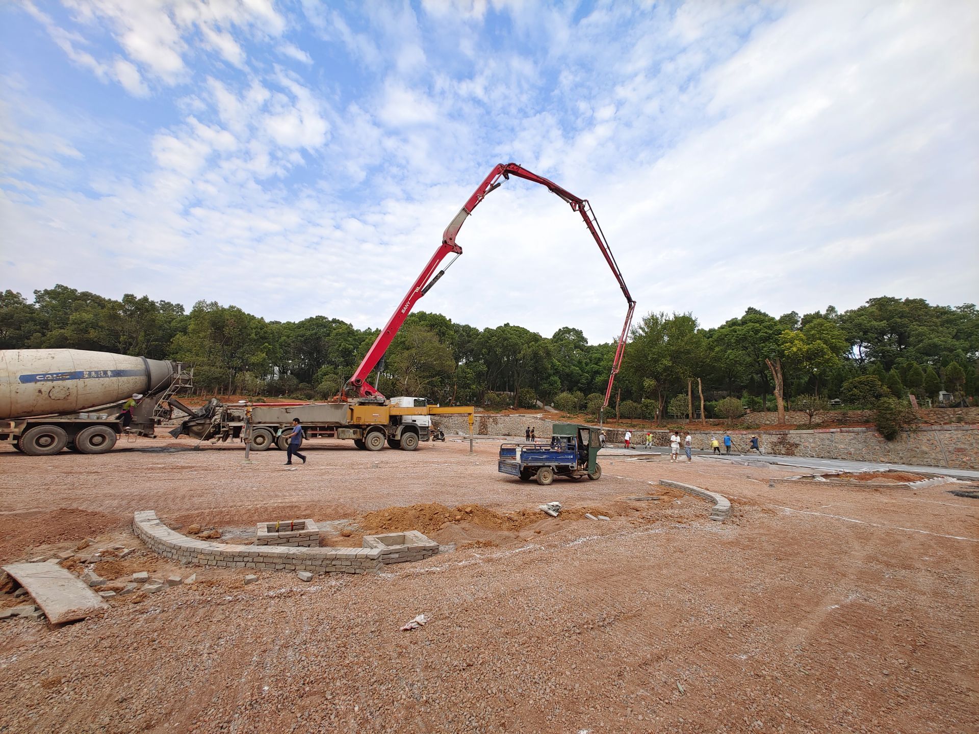 县伏虎山人防公园位于鄂东南烈士陵园东侧、国际大酒店西侧。在施工现场,机声隆隆,三台混凝土搅拌车正为硬化地坪排队等候。施工人员开足马力,相互配合,争分夺秒地进行着手头的工作。