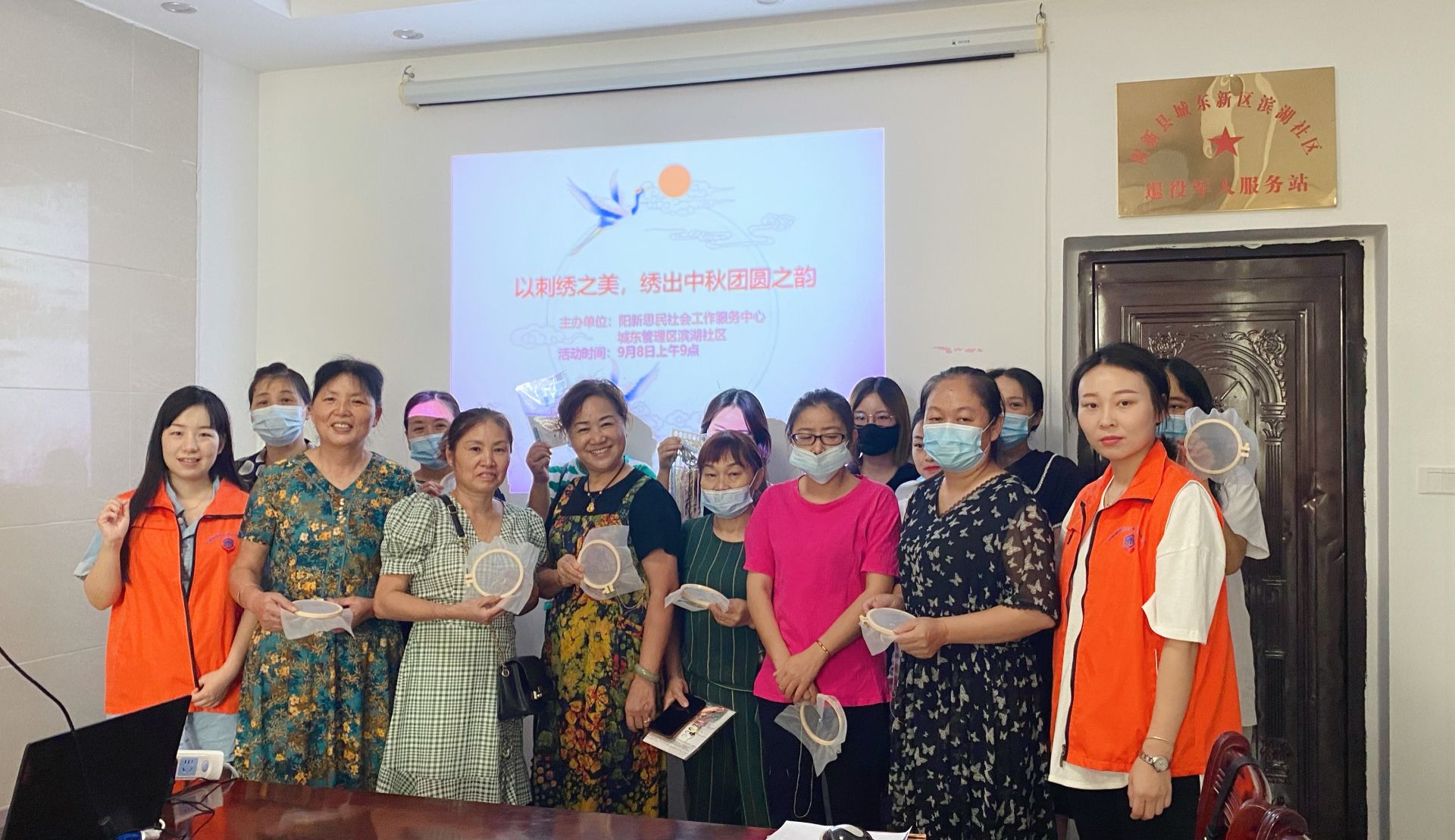 中秋来临之际,为了提高社区留守妇女的获得感和幸福感,8日上午,城东管理区滨湖社区联合思民社会服务中心开展“迎中秋,‘绣’幸福”活动。