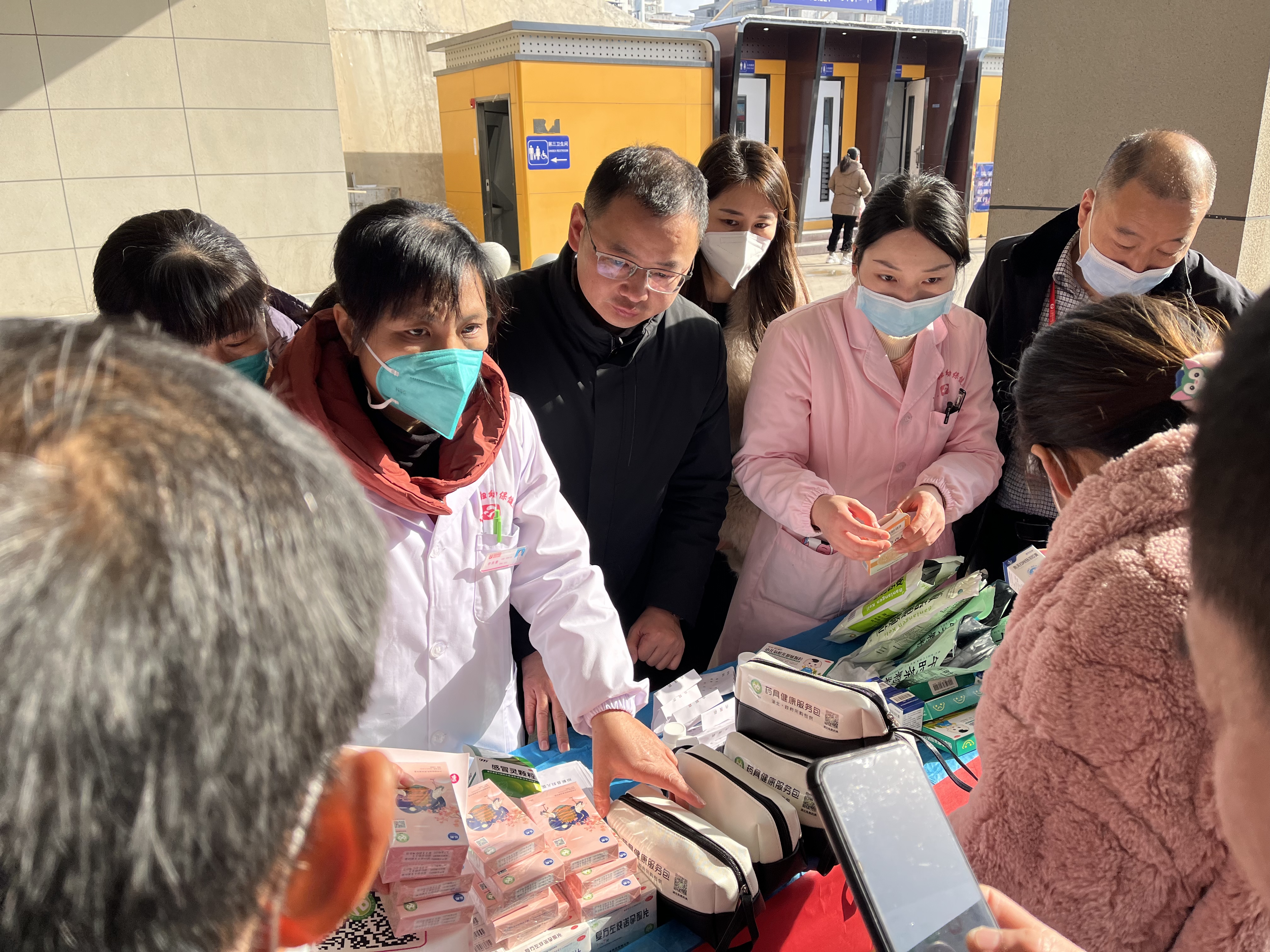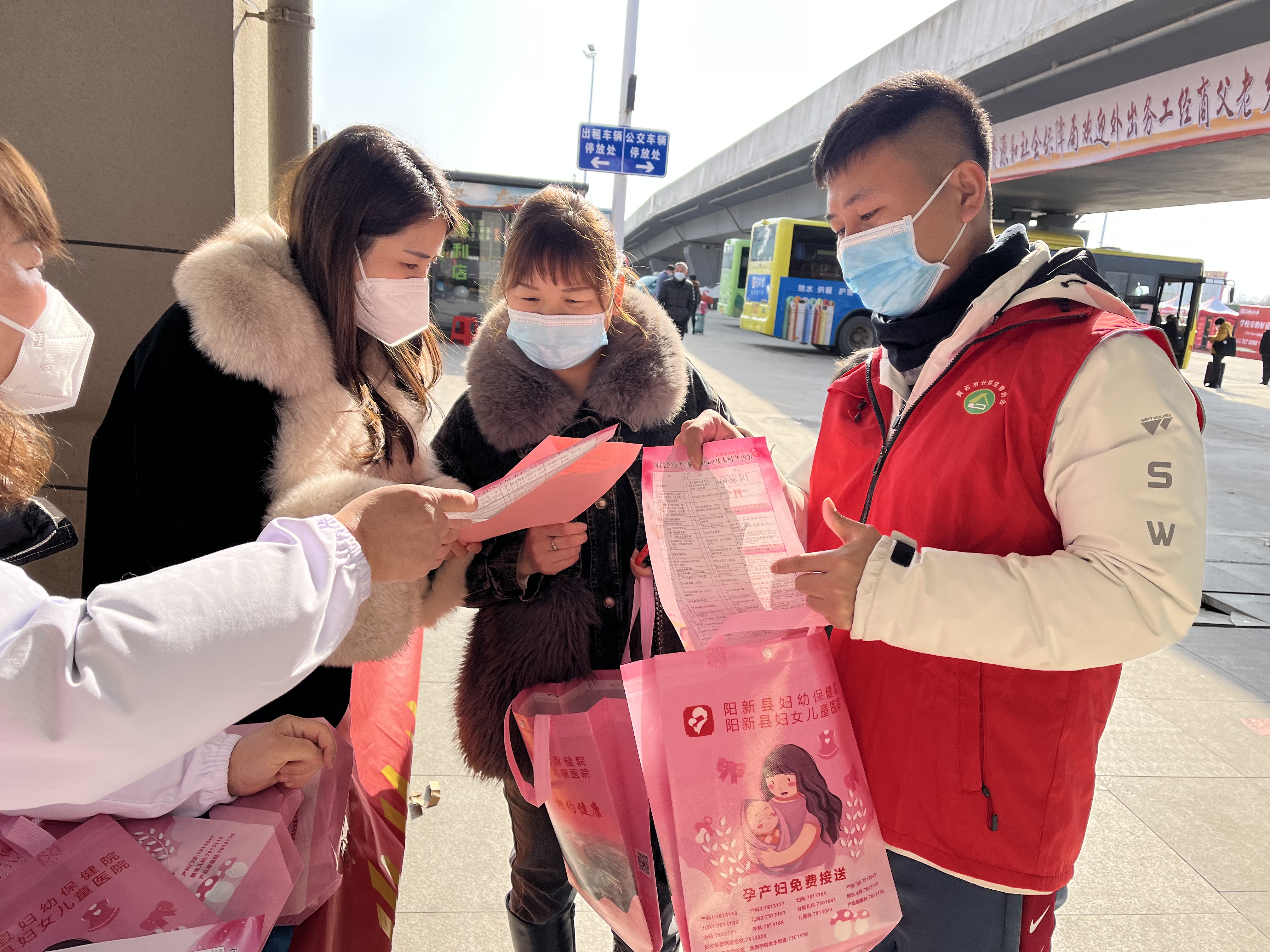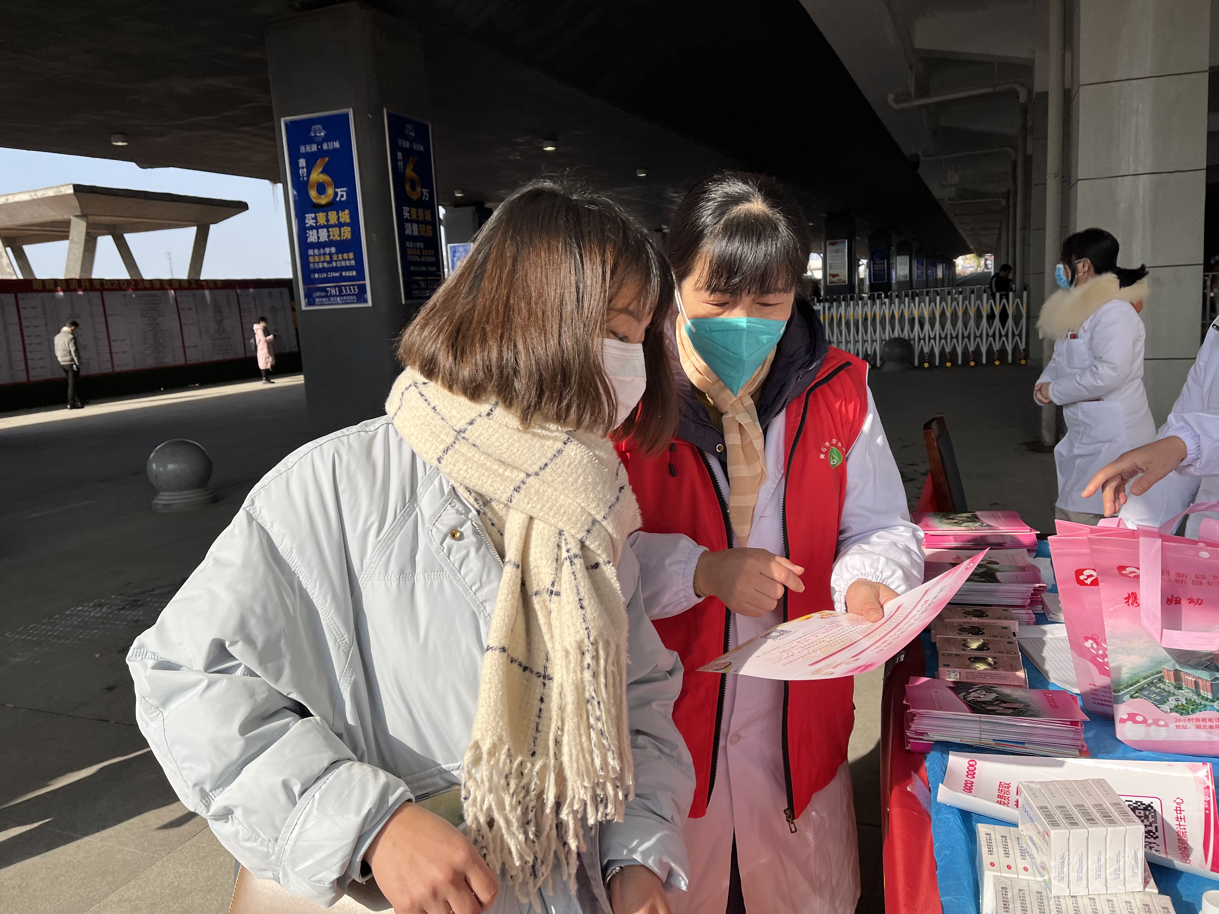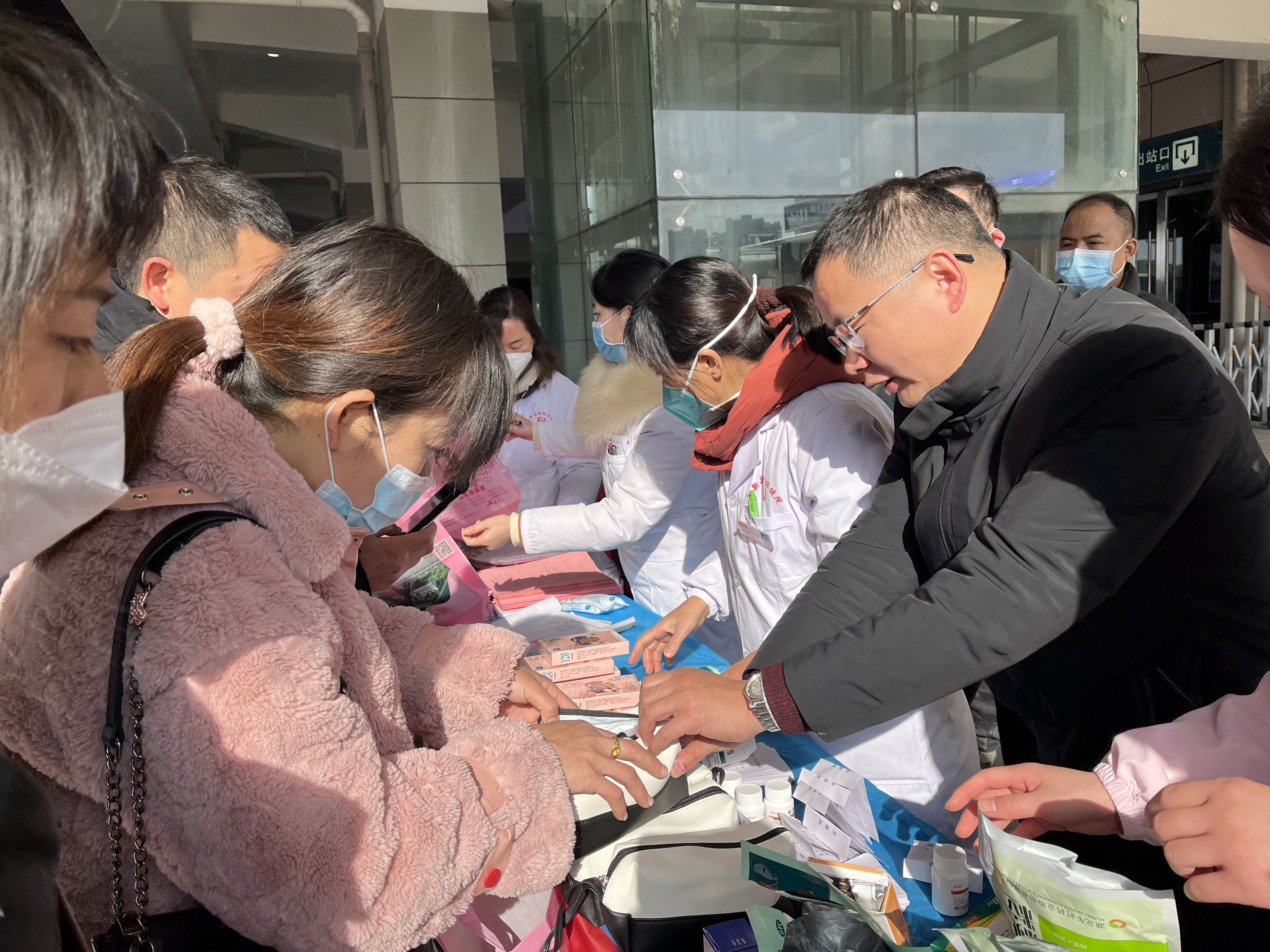 16日,阳新县妇幼保健院党委副书记、院长明文剑带队,在阳新火车站开展“迎新春送温暖”义诊咨询活动,为过年返乡人员送上一份健康与问候。