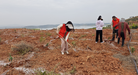 活动现场,全体党员重温入党誓词振奋提神,随后大家全身心地投入到植树活动当中,个个热情洋溢、干劲十足、分工合作、配合默契。有的拿着袋子捡白色垃圾、有的用铁锹挖坑,有的栽种橘苗,有的扶正橘苗,有的踏土固定橘苗……人多力量大,经过大家齐心协力,2000余棵橘苗很快就被栽种一空,为橘园抹上了一片新绿。