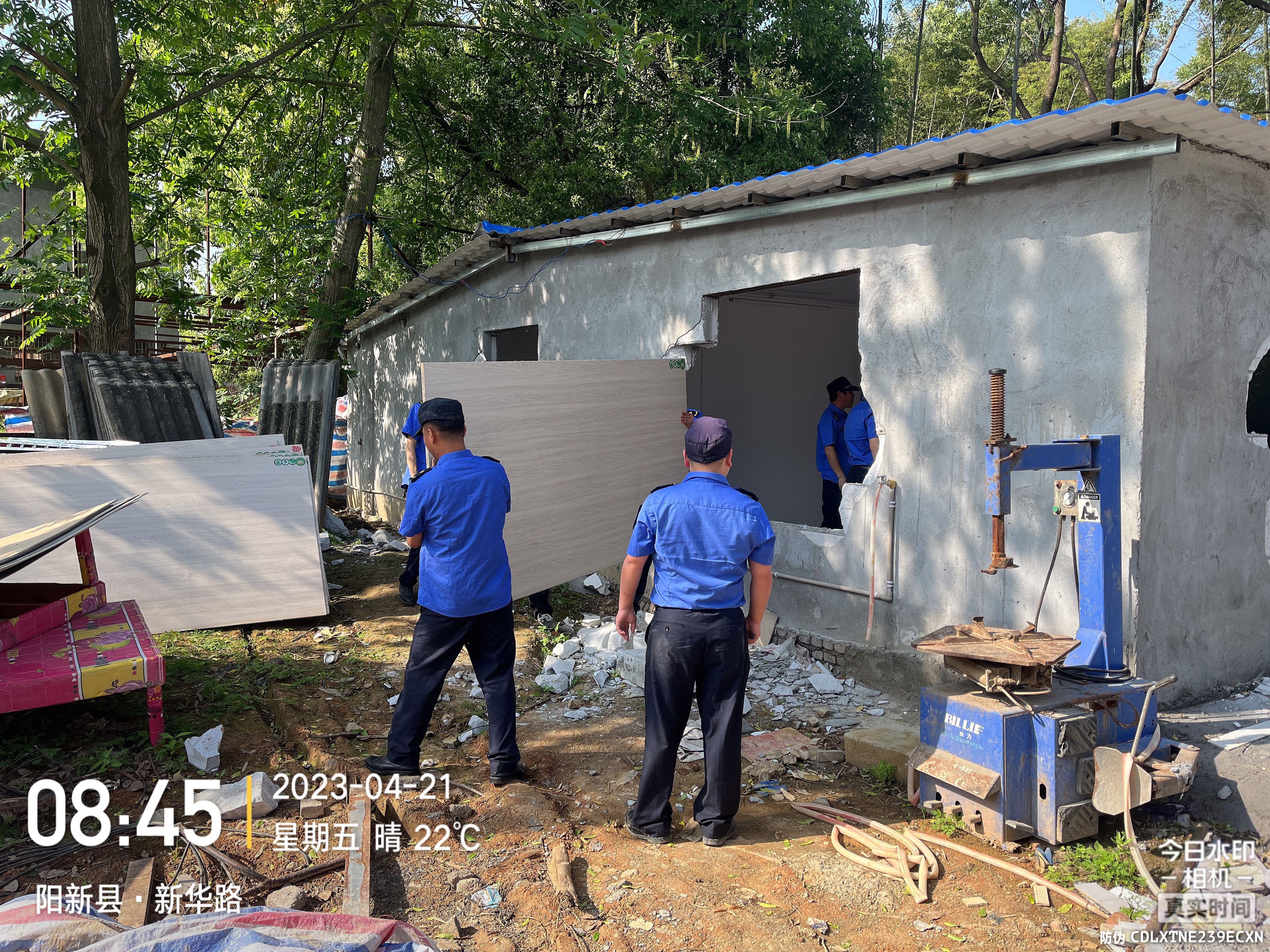 拆违现场,执法人员始终坚持文明执法,在协助当事人搬离物品,做好现场沟通协调、人员劝离等安全保障工作后,引导挖掘机进场有序作业,同时采取锤击、人工搬运等方式,对违建进行拆除。共拆除违建房屋2处800余平方米,有力震慑了违建者的侥幸心理。