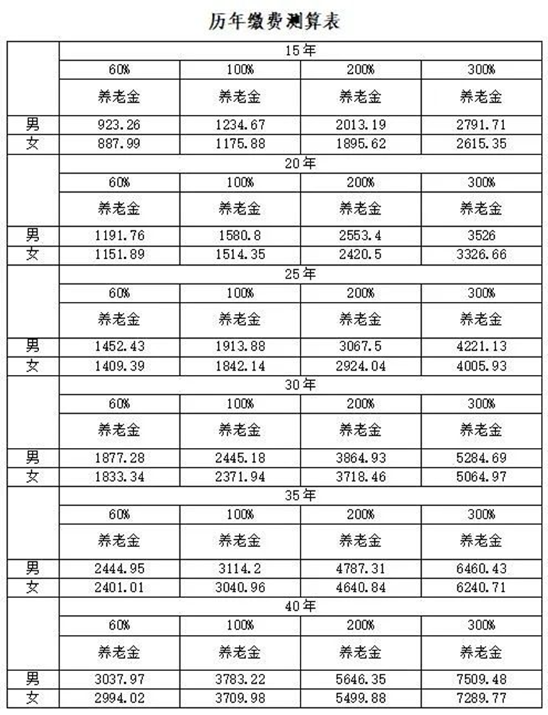60%、100%、200%、300%指不同的缴费档次。