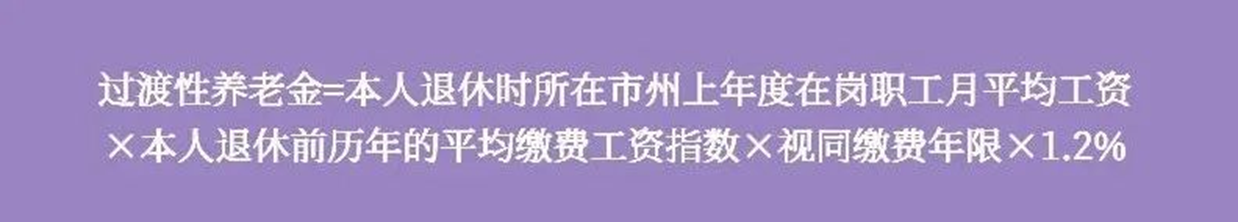 过渡性养老金标准为:参保人员退休、退职时本人指数化月平均缴费工资、视同缴费年限、过渡系数1.2%的乘积。