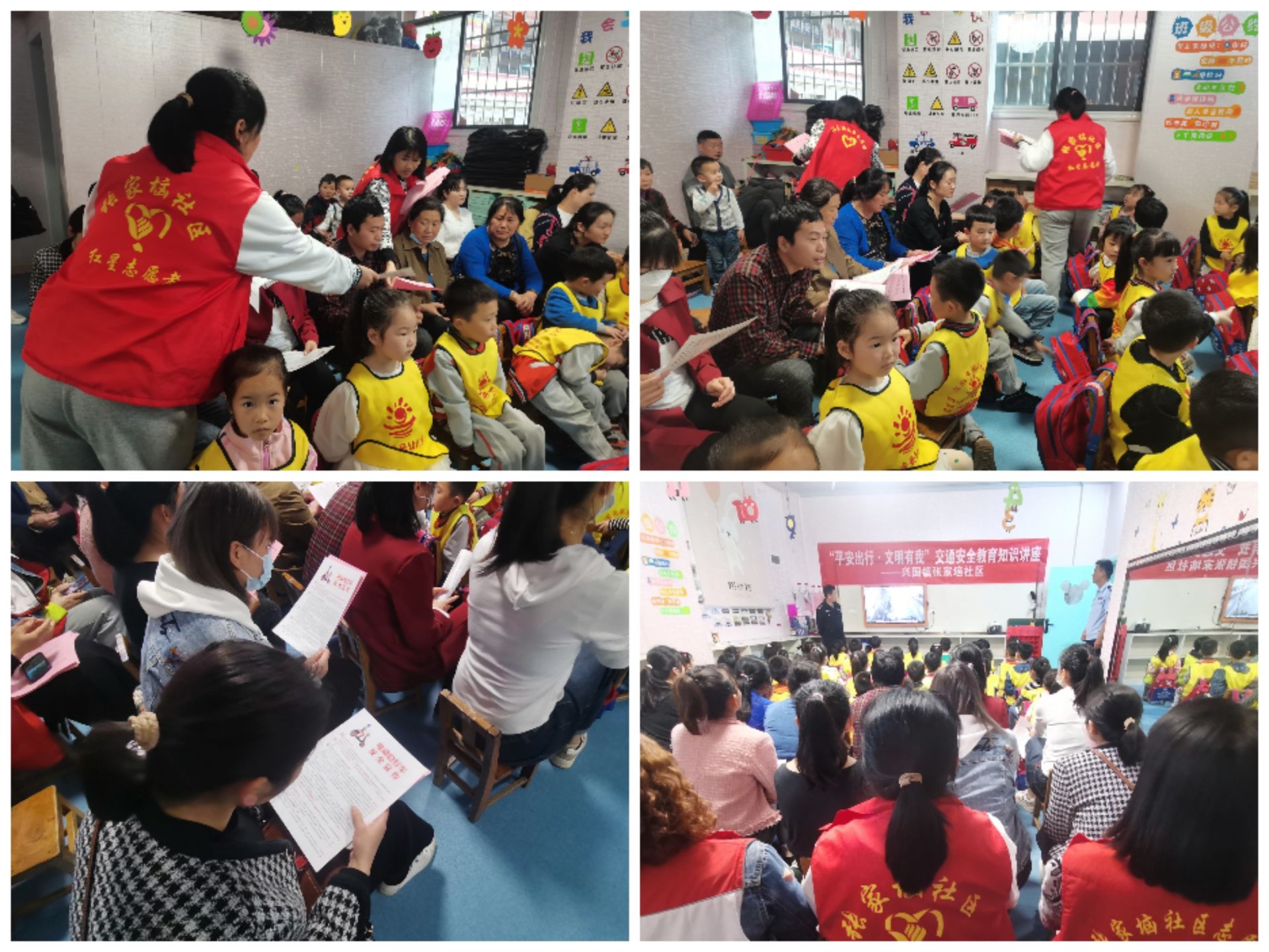 一个个鲜活的例子,在卢警官的可爱述说中变得更加形象,孩子们都积极与他互动,争先恐后举手回答问题,达到了听得懂、听得进、学得会的良好效果。他还现场利用鸡蛋敲打致碎的直观试验方式,告诉孩子们戴头盔的重要性,鼓励孩子们争做“一盔一带”的宣传员,骑乘车辆应佩戴安全头盔、系好安全带、儿童不坐副驾驶等,倡导遵规守法、安全文明的出行方式,养成文明安全出行好习惯。同时,社区新时代文明实践站2名科普志愿者们还向家长们宣传了“致电动自行车驾驶员的一封信”以及电动自行车安全宣传册,一同观看了交通安全教育视频,呼吁家长们一起遵守文明出行规则,共护幼苗健康成长。
