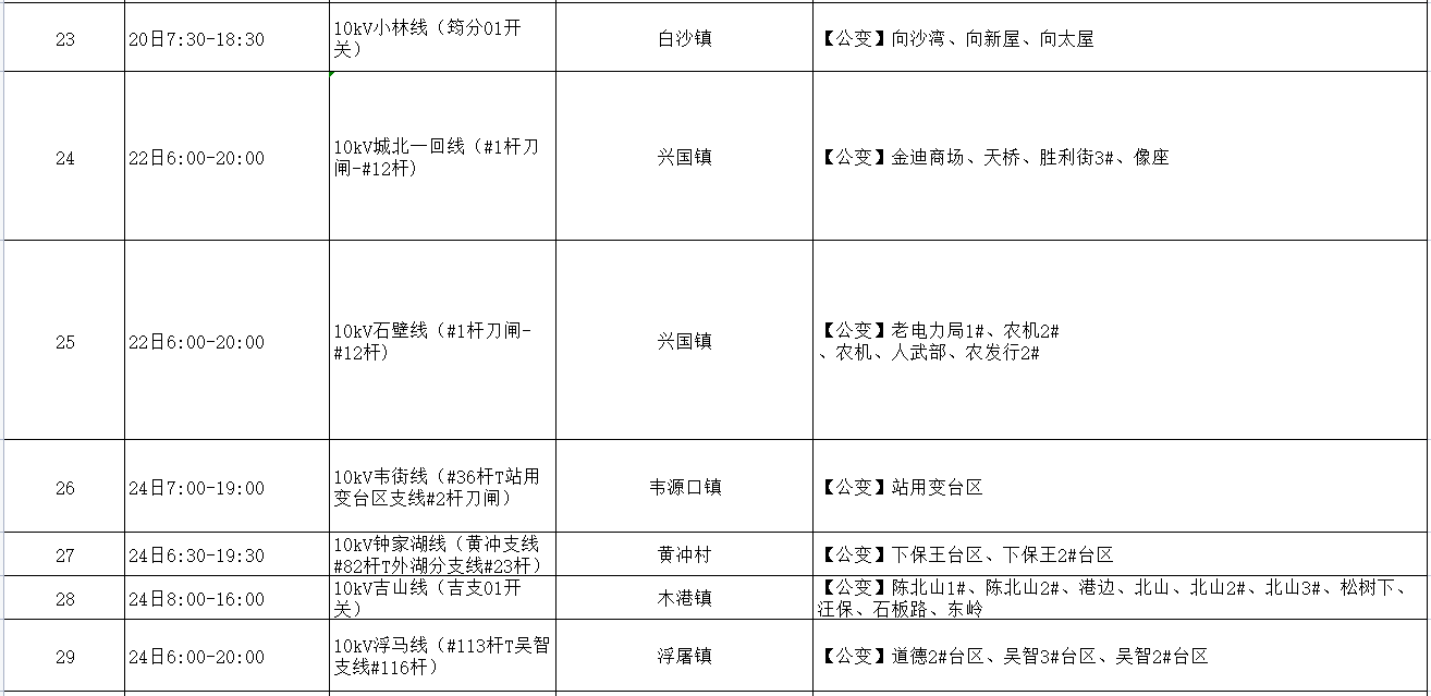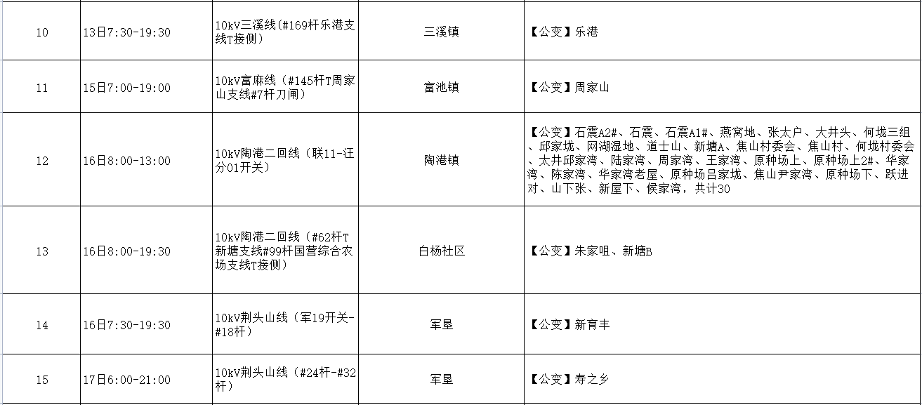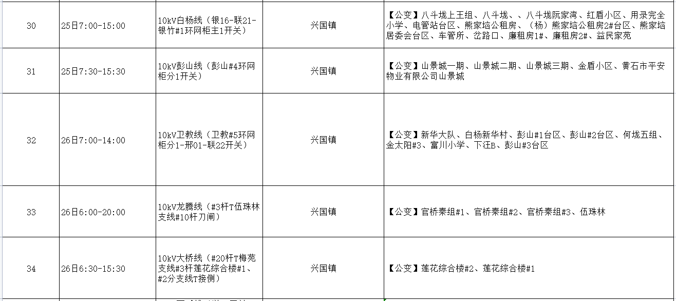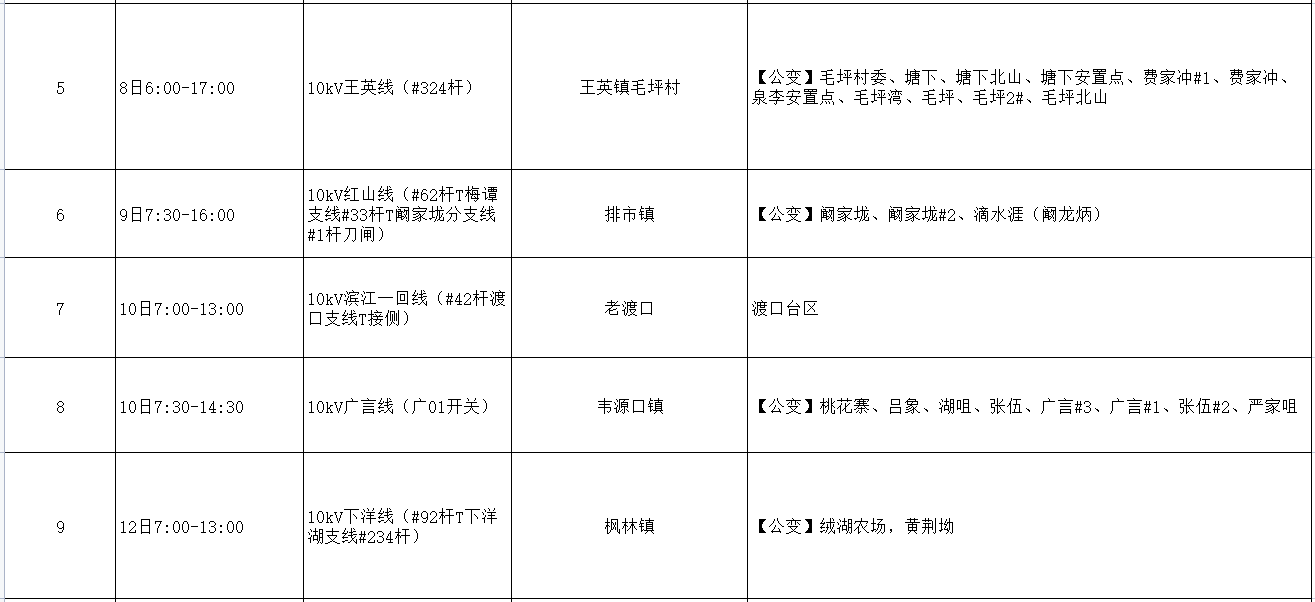 阳新电网2023年5月份检修计划:
